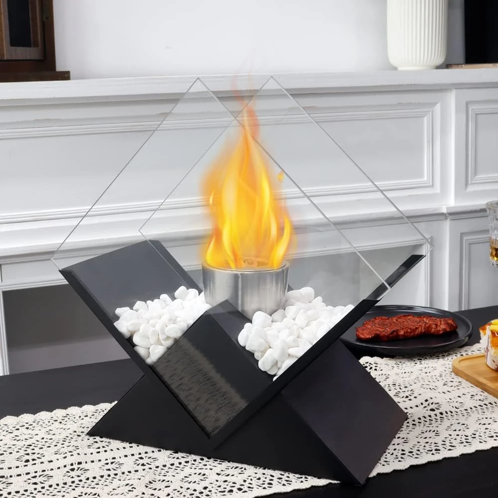 - 【MODERN DESIGN】 – With a sleek modern design and a 360° view of the dancing flames behind clear high temperature resistant glass, this table top fireplace is a stylish conversation piece! It would also make a fantastic gift for your interior design loving friends or family!