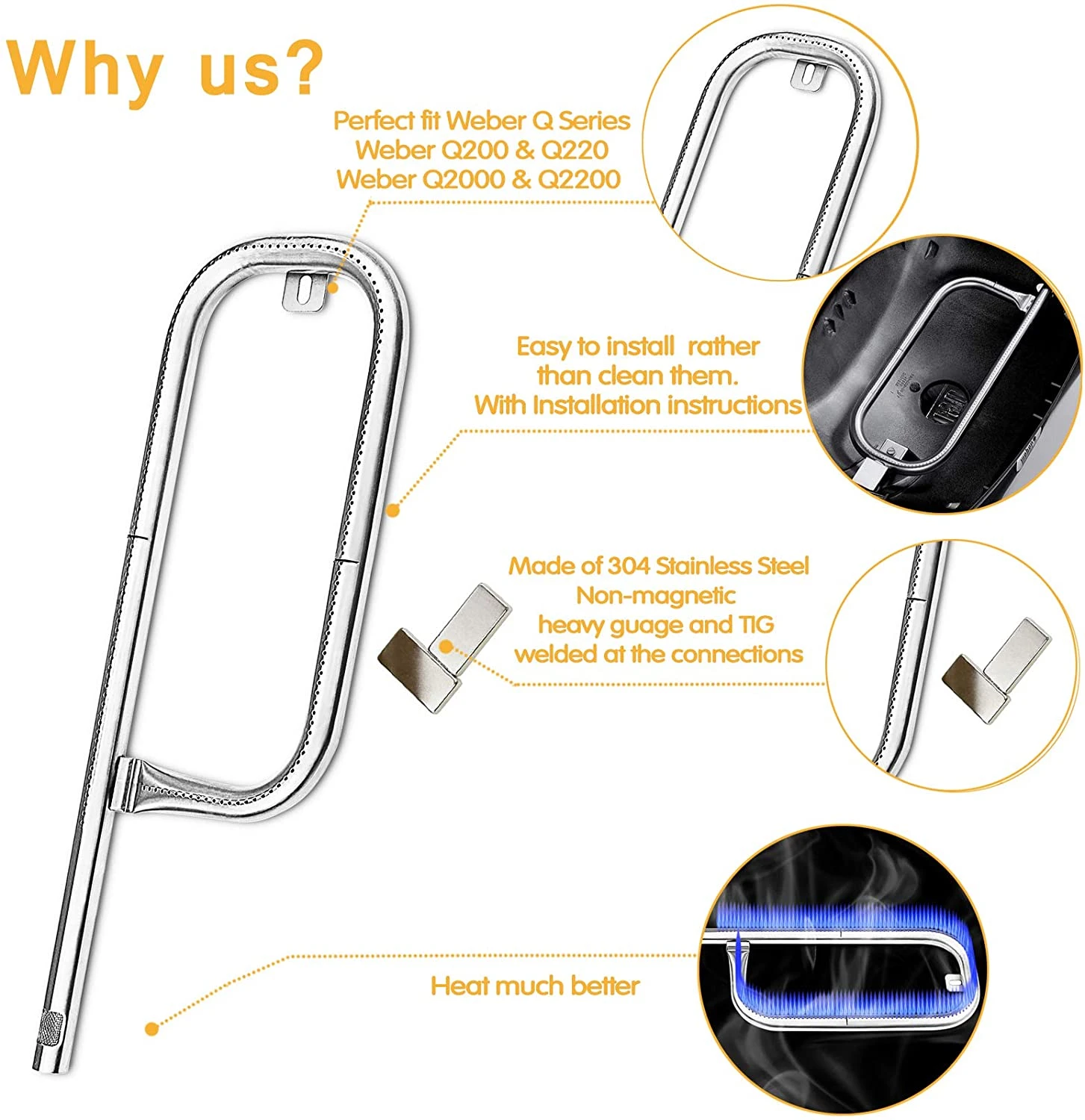 - Grill Burner Replacement for Weber tabletop Q Series, Q200, Q220, Q2000, Q2200 Grill Models. Replacement for Weber Models: 396000, 396001, 396002, 566002, 53060001, 5406000, Part Numebr: 69956, 41862