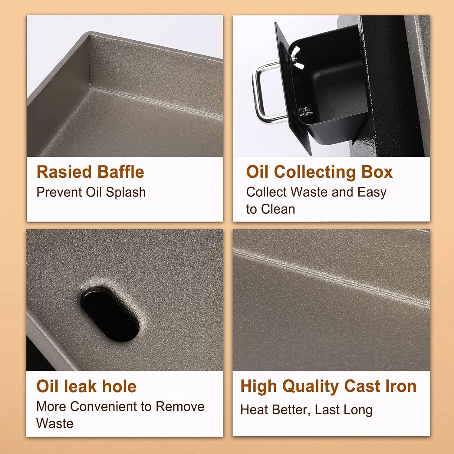 - 【GREASE MANAGEMENT SYSTEM】- Removable, slide-out grease cup collects oil residue while cooking, and is easy to clean up after use. Griddle top is also detachable for washing. The hole on the griddle top allows you clean food residue anytime.【EASY TO ASSEMBLE】- Comes with easy to follow instructions for assembly.【GIFT BAG】- This carry bag with extra thick PVC coating which is sturdy and durable. It’s an ideal gift for those who appreciate chef style grilling wherever they go