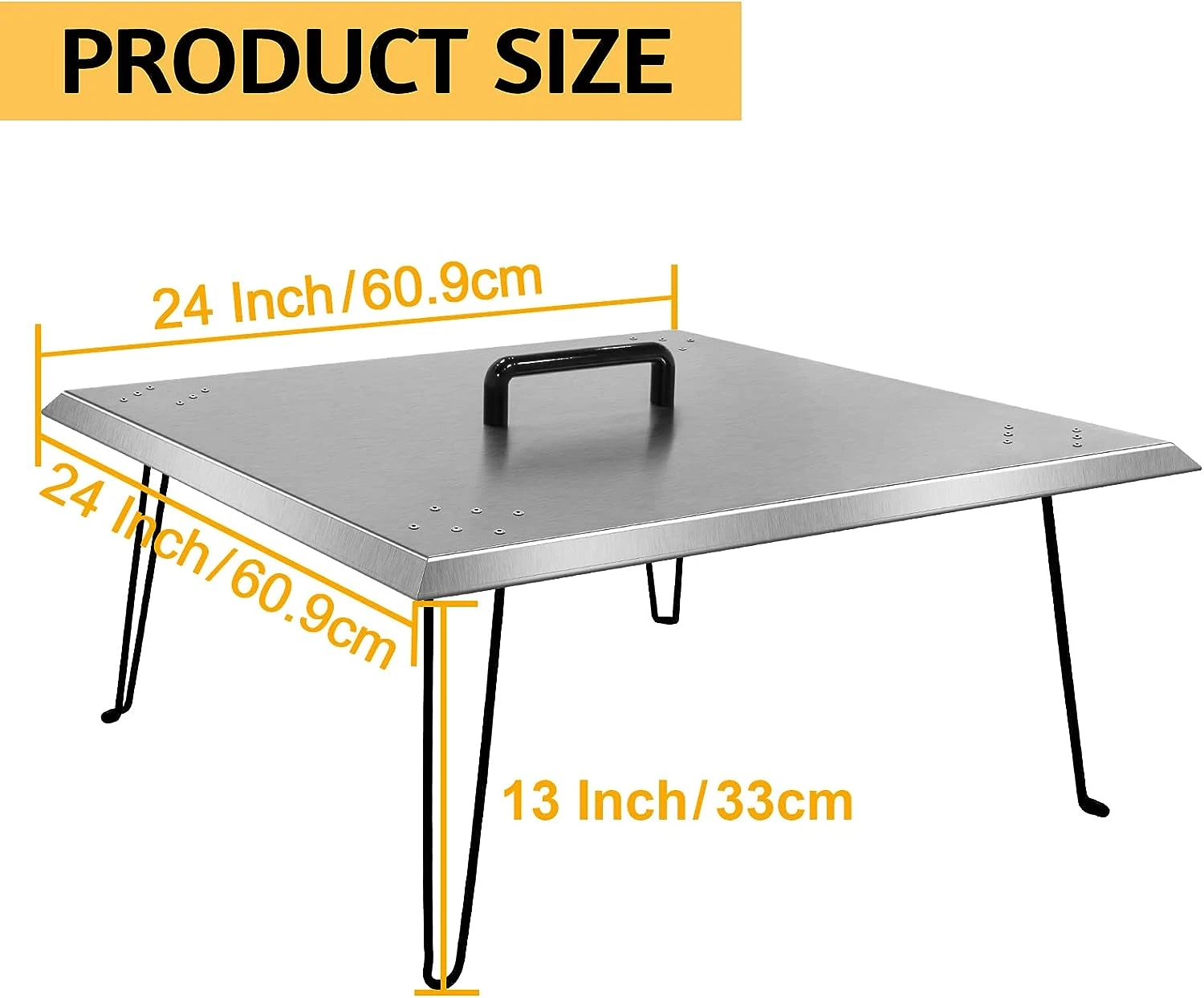 - ✨【UNIQUE DESIGN SIZE】Functional cover size: 24” L × 24” W × 13” H inch; thickness of the cover: 0.06 inch (1.5 mm). Weighs 13.2 lbs(6 kg) and can stand firmly on top of the brazier. It’s designed to fit any round or rectangle fire pit smaller than the cover. With premium functions of heat diversion and heat dissipation, the lid pushes the air down and out, provides warmth to your family.