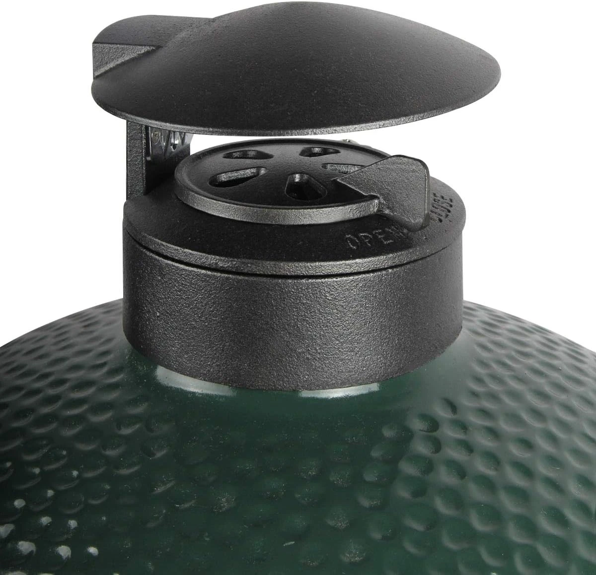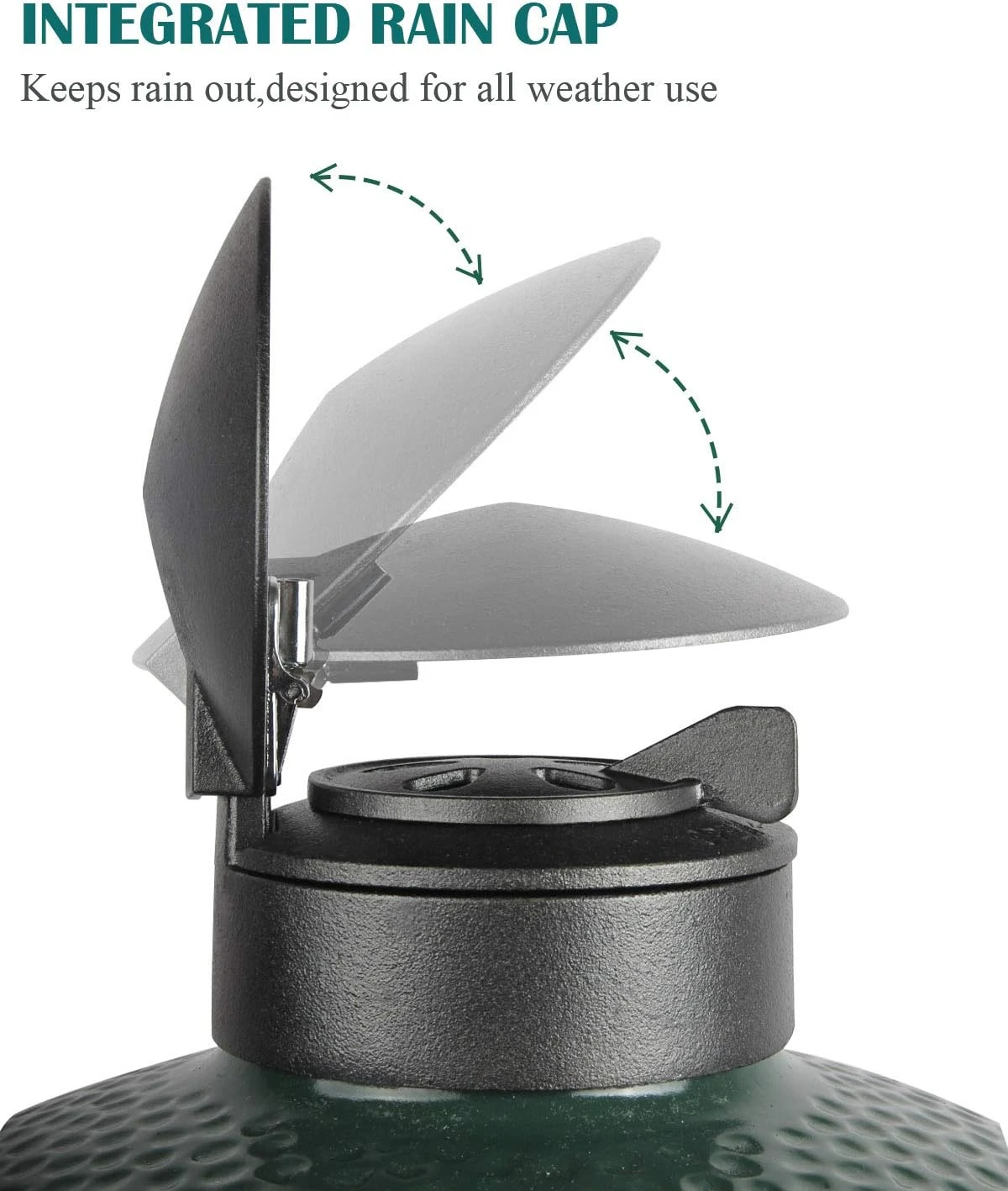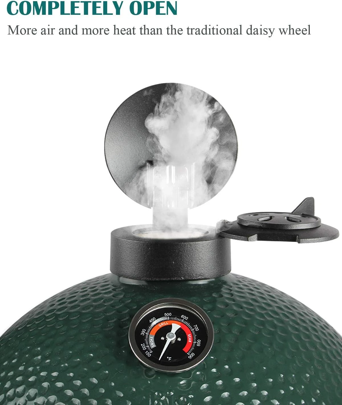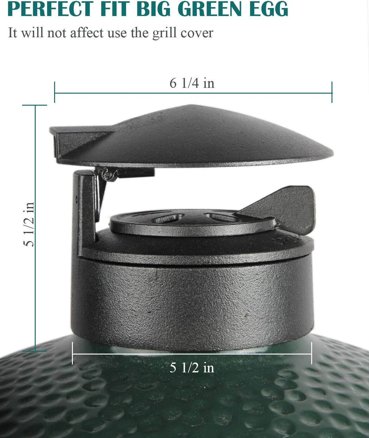 - A MUST-HAVE BIG GREEN EGG ACCESSORIES-The new cast iron cap has combined all pros of daisy wheel, ceramic cap and Chimney Top and improved some of their cons.3 in 1 design avoid complex choices when cooking.