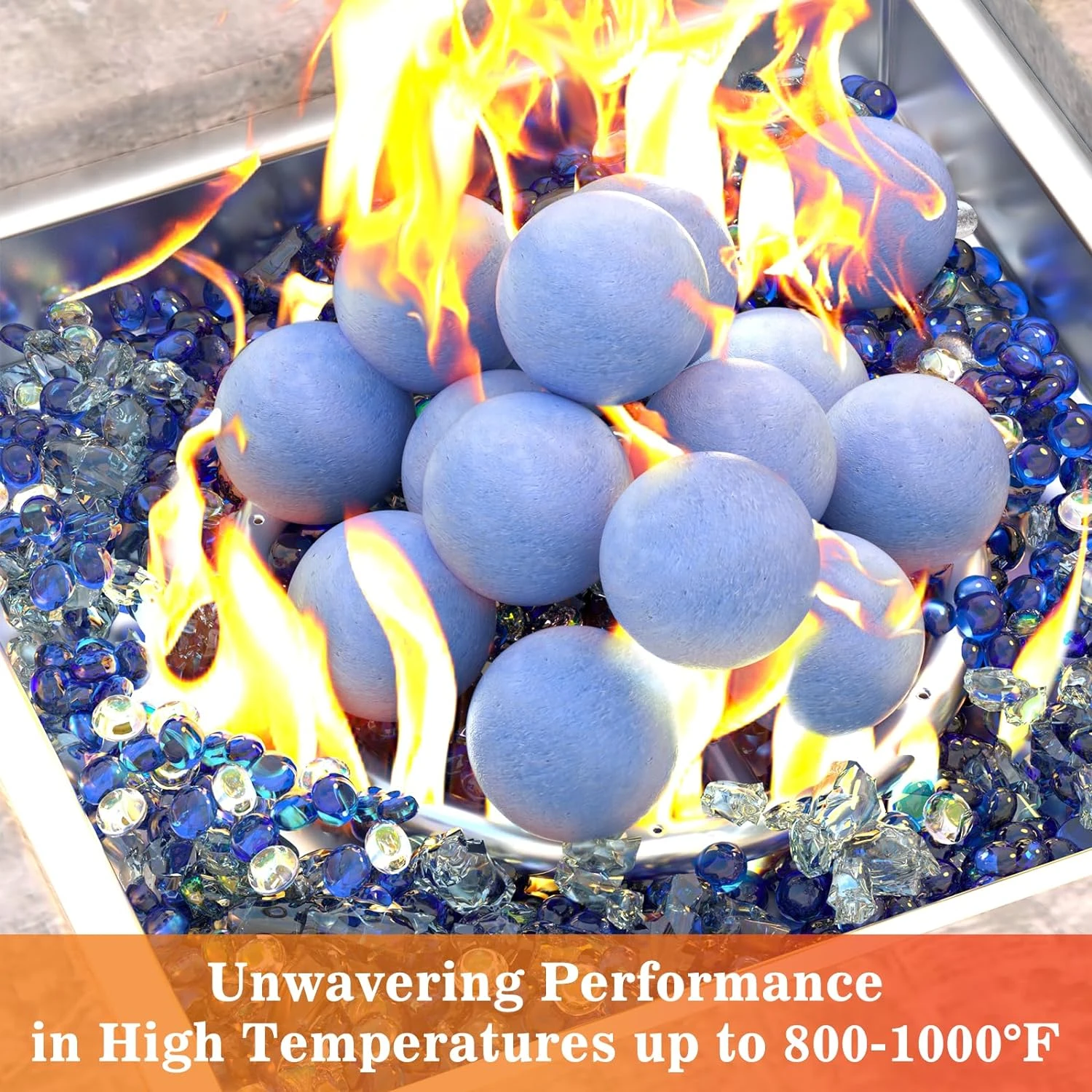 - ♨【Wide Range of Use】– They can be used in indoor or outdoor fireplaces that use propane gas, natural gas, or electricity. They are also suitable for indoor glass fireplaces, outdoor fire pits, fire tables, and fish tanks. Each package contains 15 blue ceramic fireballs with a diameter of 3 inches.