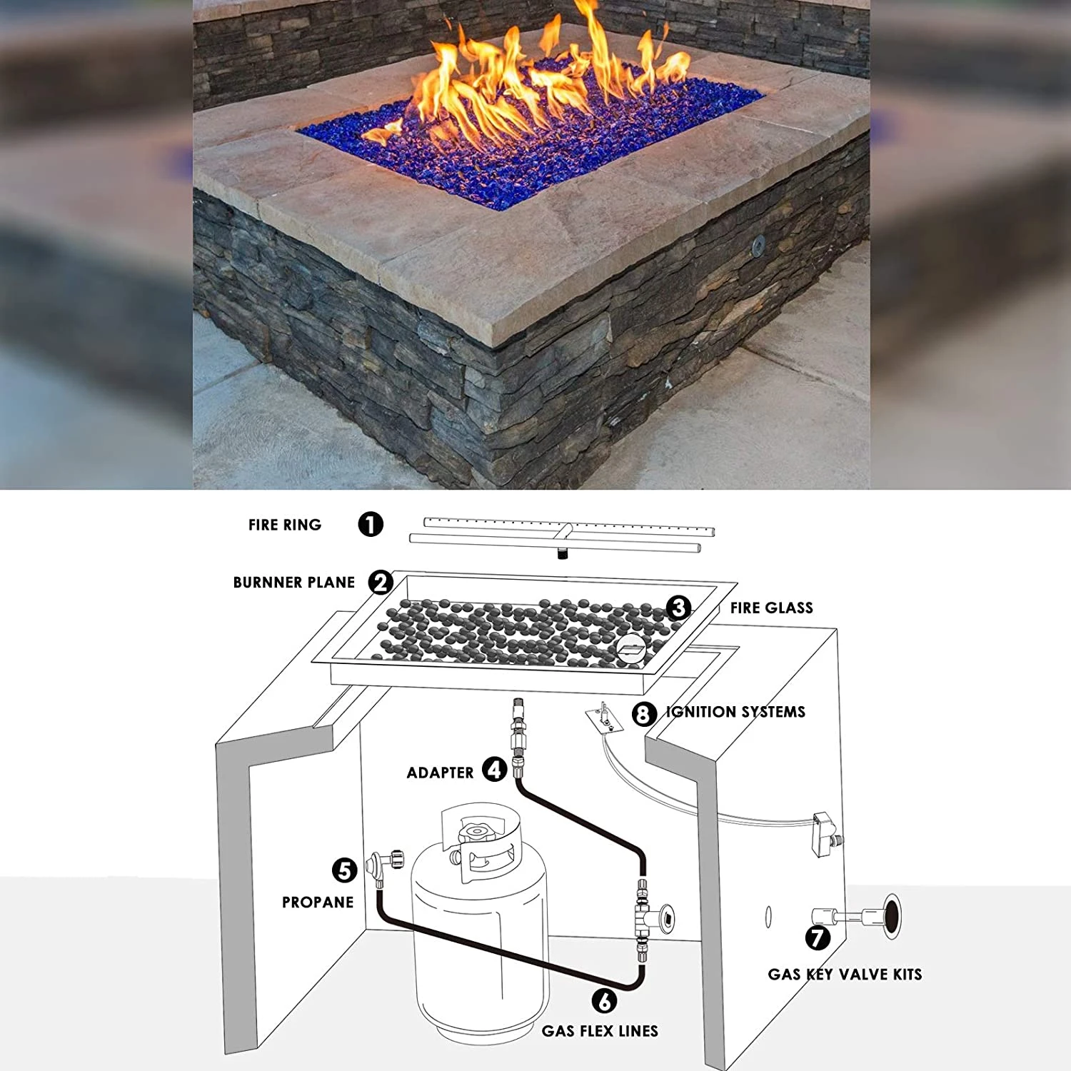 - 30 Inch Drop-in Insert Gas Fire Pit H-Shaped Burner Pan Kit Fits for natural gas or propane.