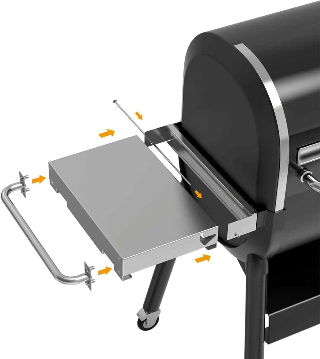 - ✅【Use For】The side table folding shelf is stable. Get seasonings, meats, vegetables, etc. at your fingertips. This side folding shelf is great weber smokefire accessory!