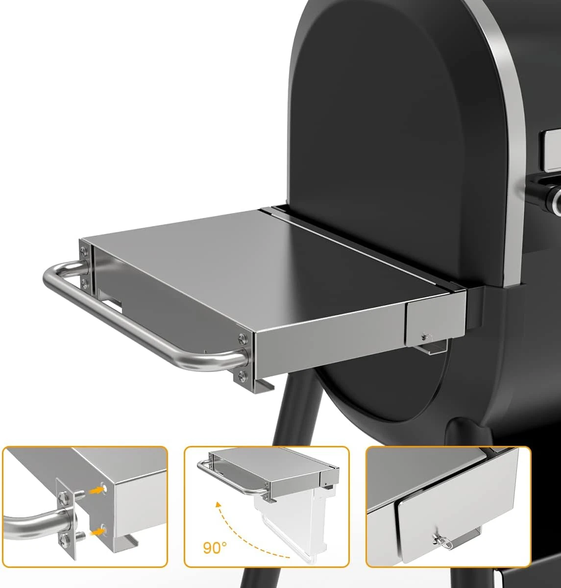 - ✅【High-quality Material】The folding side shelf is made of heavy duty 304 stainless steel easy to clean with no sharp edges, Handles for easy folding and lifting of grill side shelf. ✅it is an indispensable accessory for Weber SmokeFire EX4 and EX6 Grills.