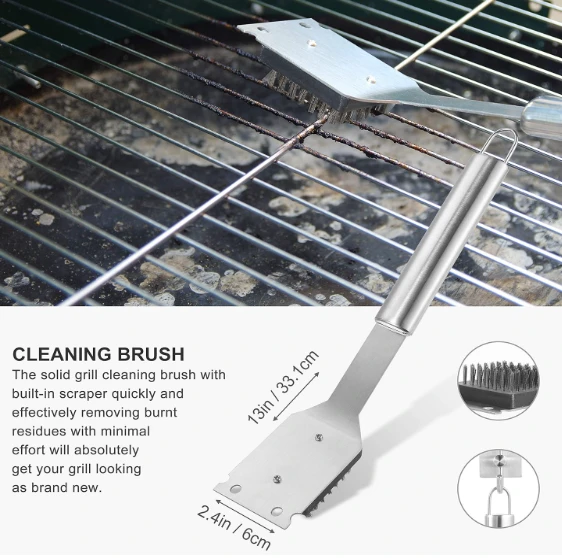 - Easily Cleaning – The grilling tools has metal hanging loops for convenience and easy storage around your grill or kitchen when not in use. Also it is dishwasher safe, easy to clean.