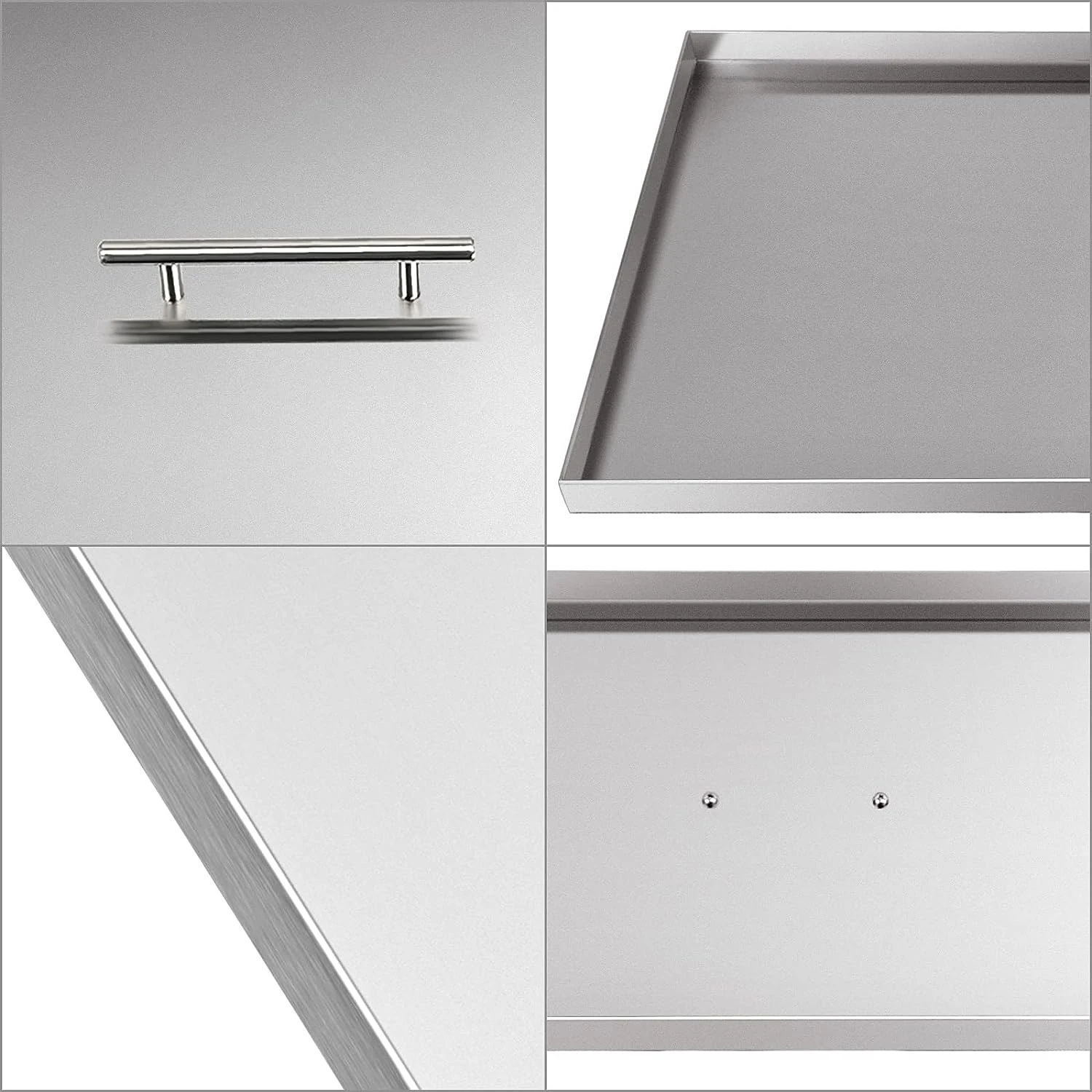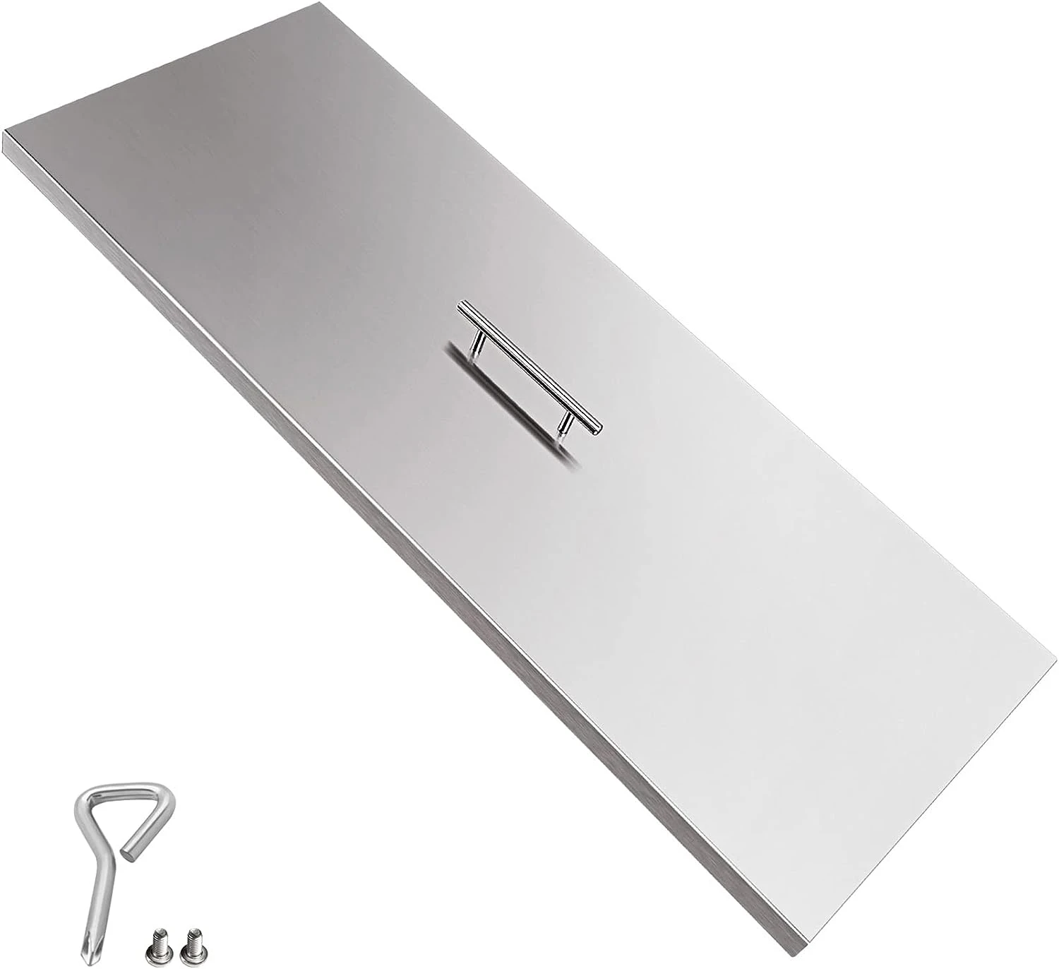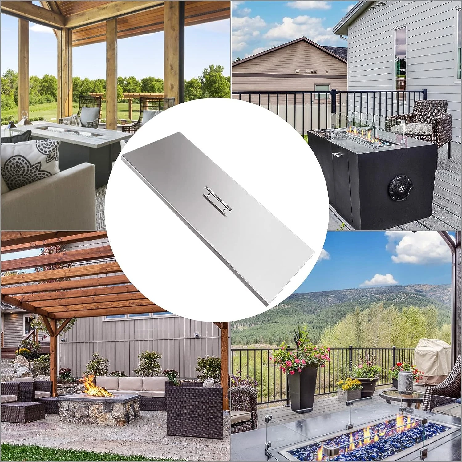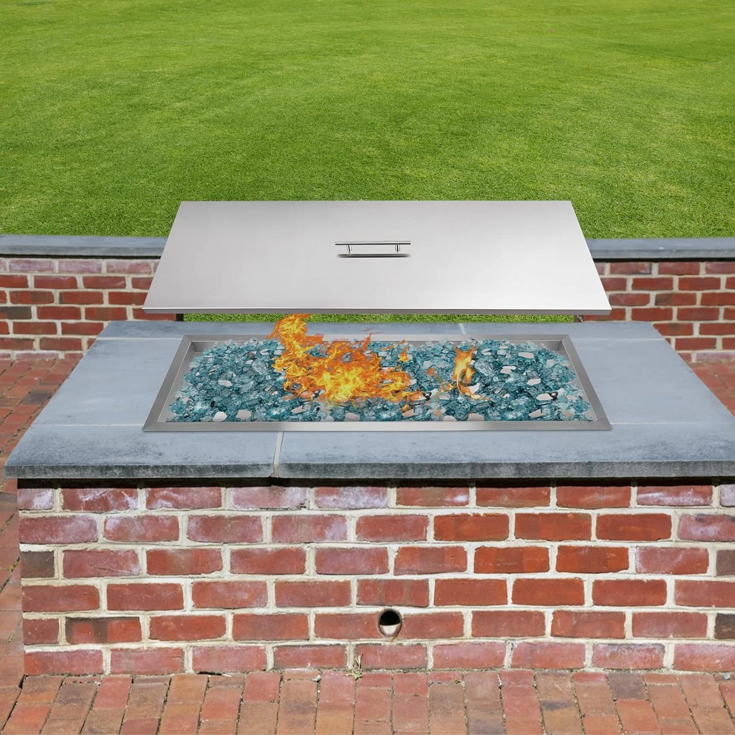 - Dimensions: Measures 33.2″L x 13.1″W x 1″H, designed to cover 30″ x 10″ Rect fire pit drop in pan.