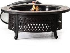 - 【Durable Construction】 – This fire pit is made of a black powder-coated steel and finished with a high-temperature coating for heat resistance. The stylish lattice pattern design adds visual interest to the piece even when it’s not in use.