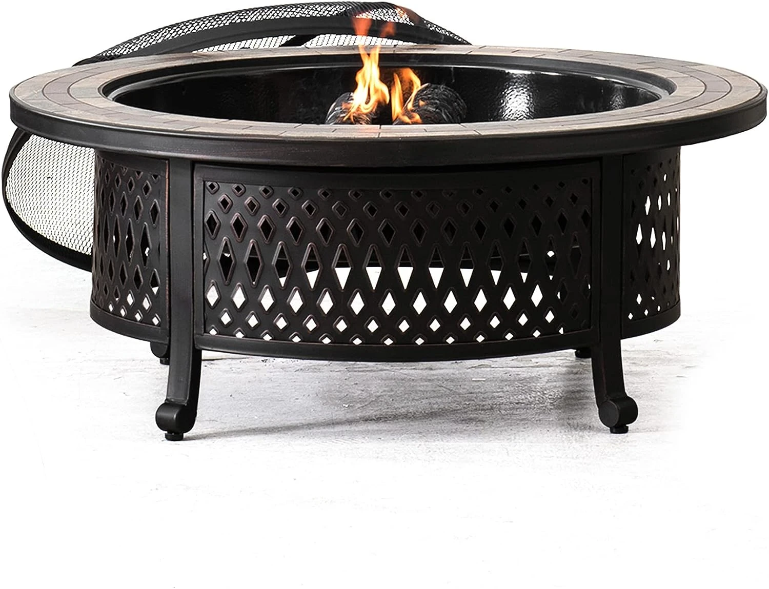 - 【Ceramic Tile Table Top Design】 – Beautiful ceramic tile tabletop design of this round fire pit not only makes this a gorgeous addition to your garden or patio but also can have your favorite hot drink right at your fingertips.