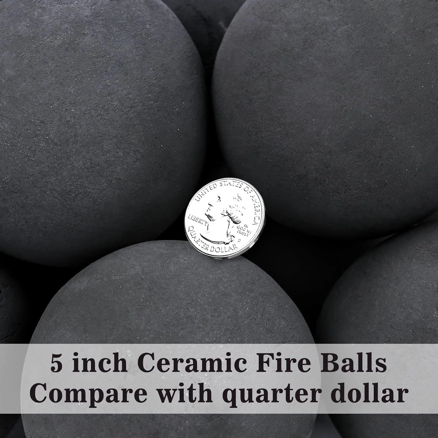- ♨【Wide Range of Use】– They can be used in indoor or outdoor fireplaces that use propane gas, natural gas, or electricity. They are also suitable for fire pits, fire tables, fire bowls or landscape home decor. Each package contains 6 black ceramic fireballs with a diameter of 5 inches.