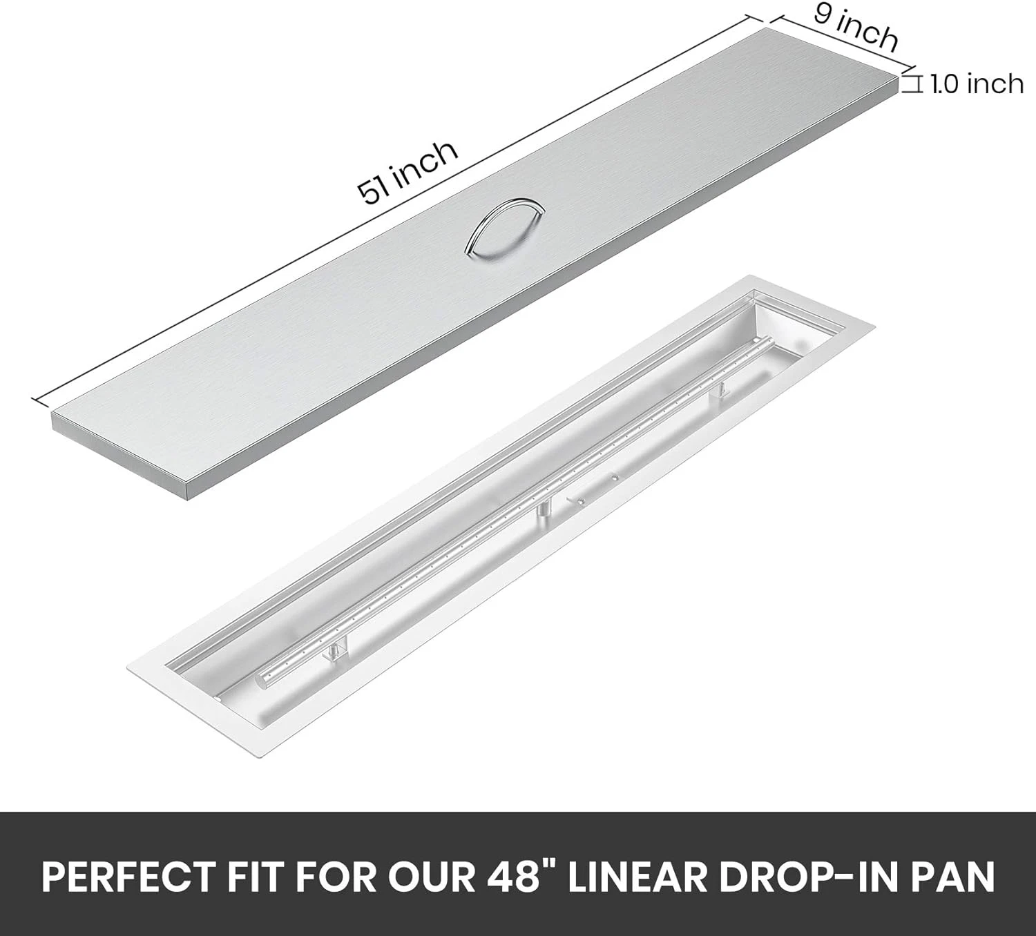- Dimensions: Measures 51″L x 9″W x 1″H, designed to cover 48″ x 6″ linear drop in pan.