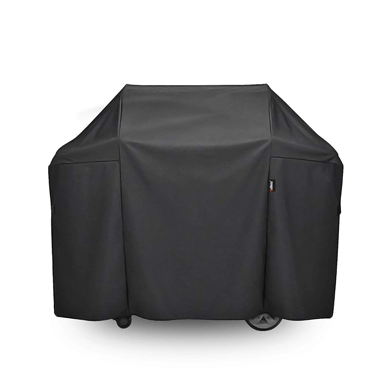 - Material: Made of premium heavy duty PU fabric. This barbecue grill cover can keeps your grill intact in all kinds of environments. 100% waterproof, fade resistant, UV protection and Crack-Resistant, durable and last longer, gives your grill all year round protection against all elements