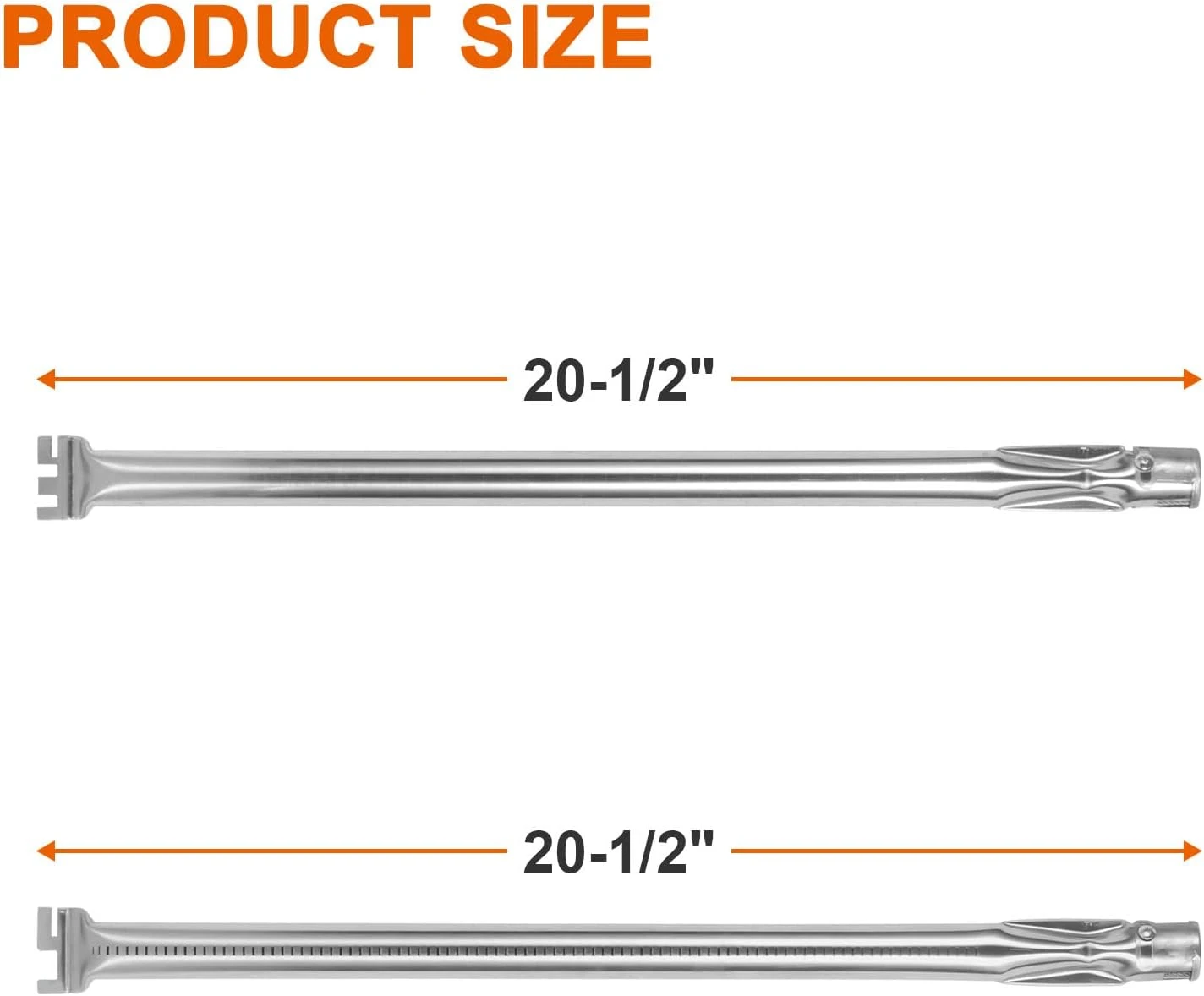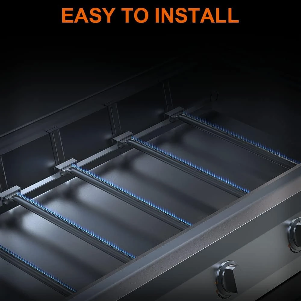 - 【DIMENSION &Material】:The gas grill burner kit include 4 main burner tube (70306) and 1 smoker burner tube( 70307). Each burner tube is 20-1/2″ L.