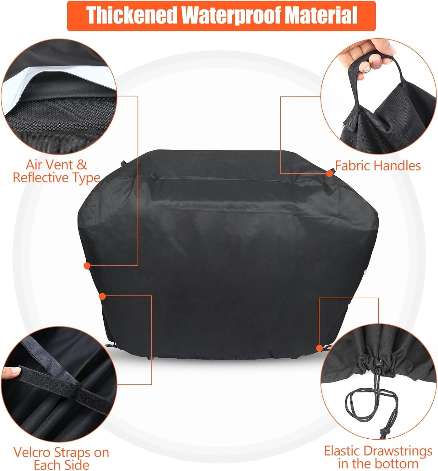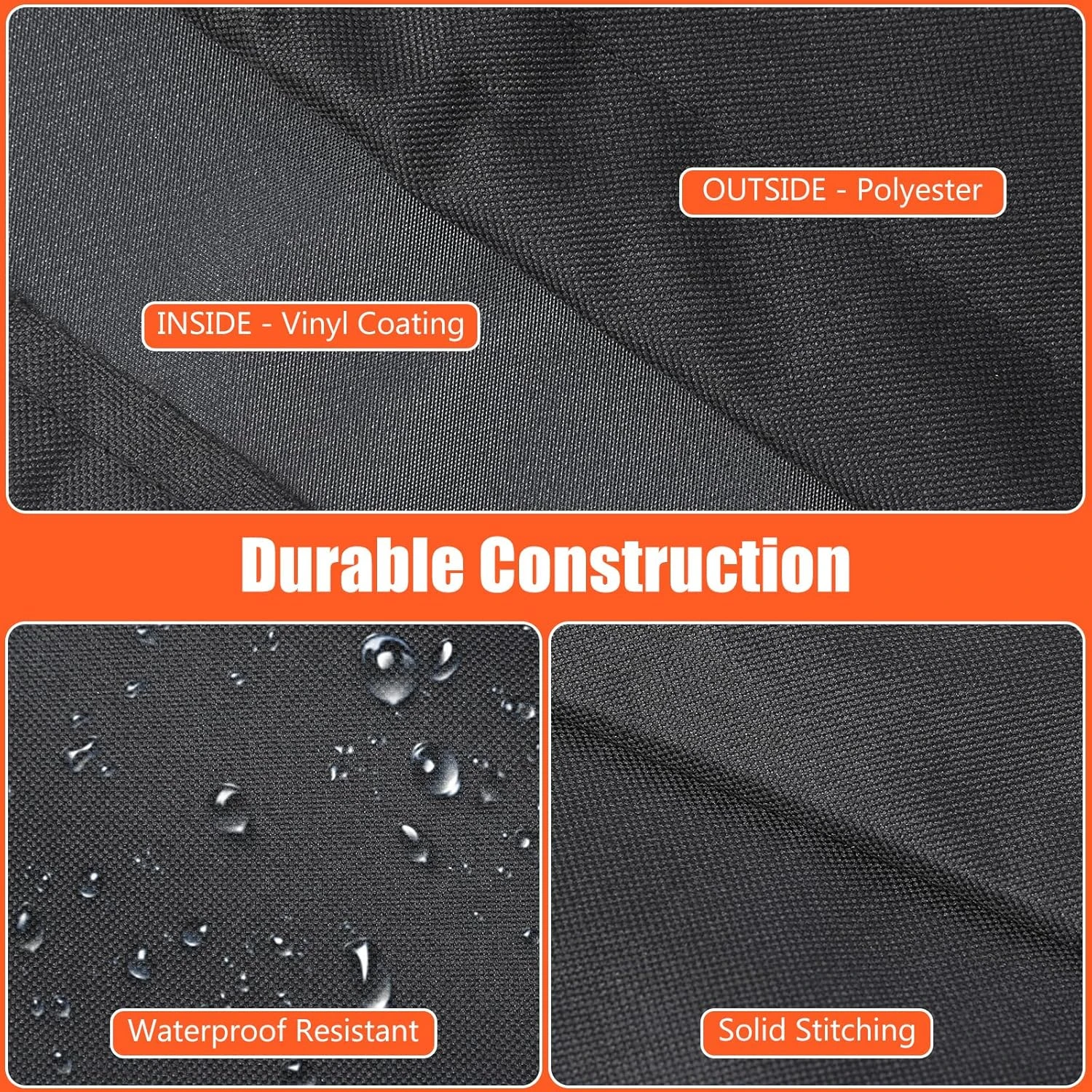 - [ Extremely Waterproof & Fade-Resistant ] – 600D high density finish with inner PVC polyester material makes our grill covers extremely waterproof even in stormy weather. The rainwater will slide off from the surface of the cover so as to keep your grill dry and prevent rusting. After precise processing of UV resistance, we are confident that our grill covers can resist fading after years of use.