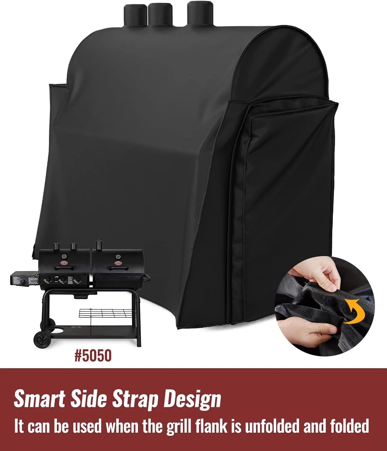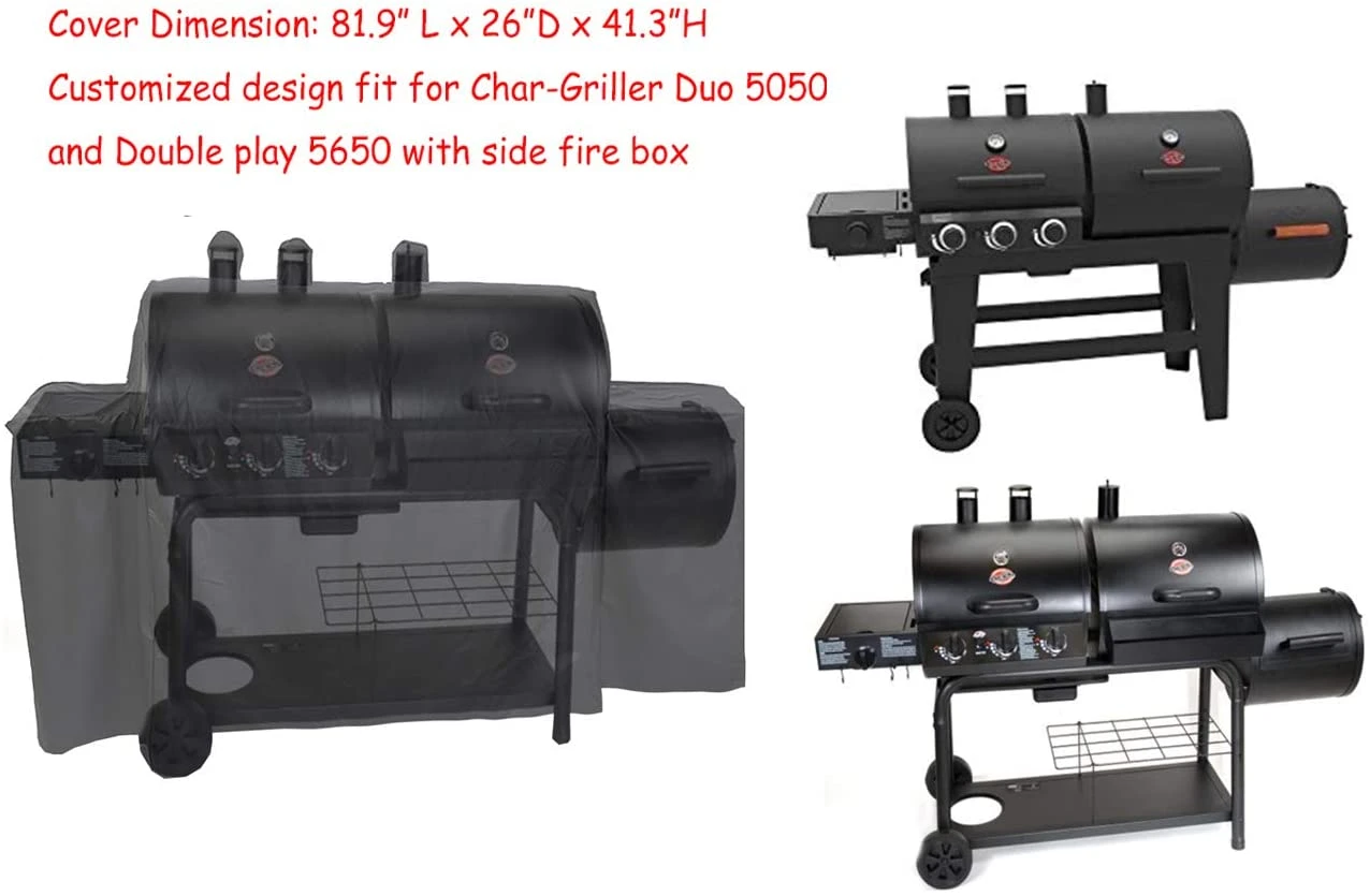 - There is another cover model for Char-Griller Duo 5050 and Double Play 5650 without side fire box in our store, Click here to get it.