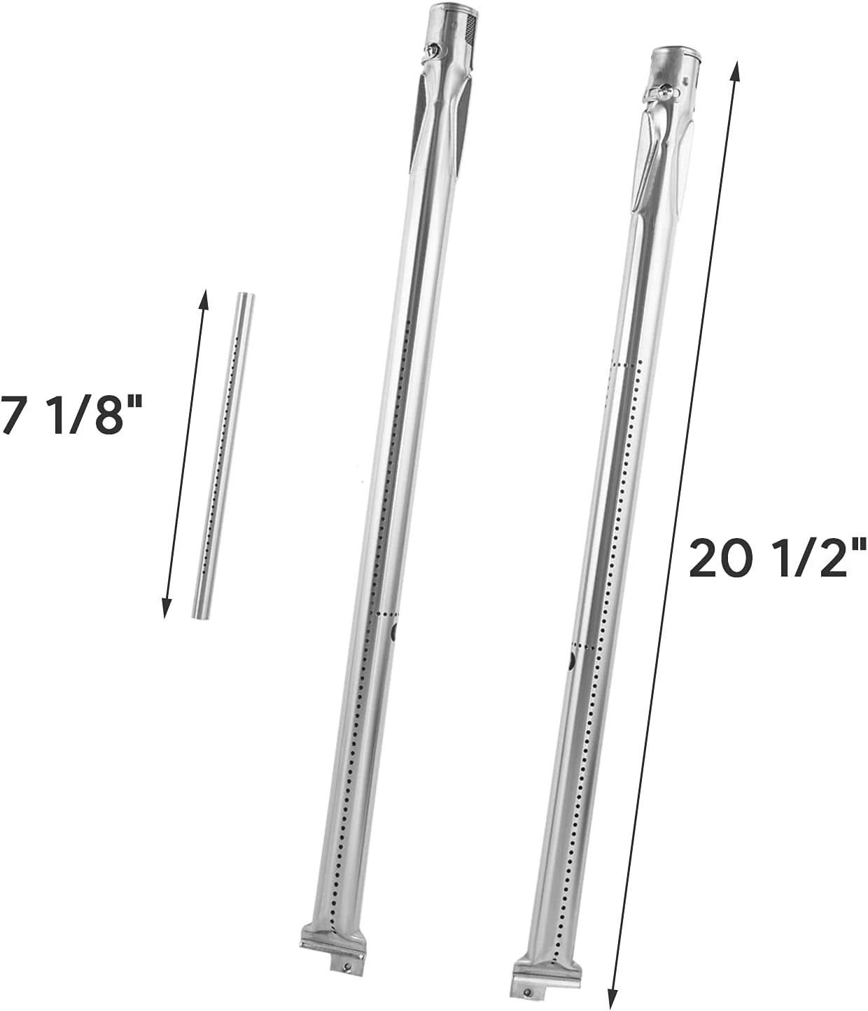 - Dimensions: Main burners are 20-1/2″ long tip to tip and the crossover burners are 7-1/8″ long