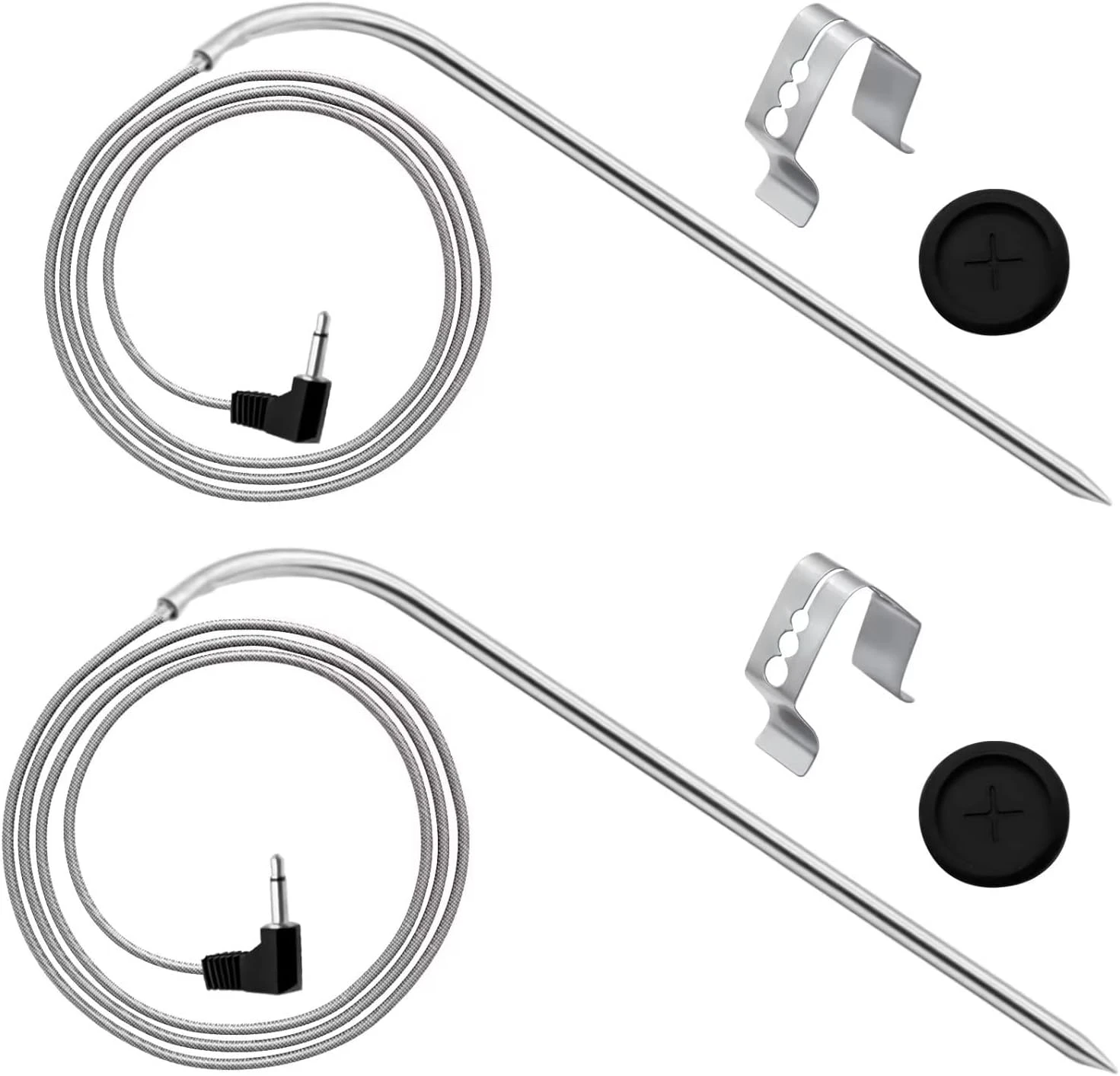 - 【PACKAGE】: 2 x Meat Probes,2 x Clips, 2 x Probe Grommet