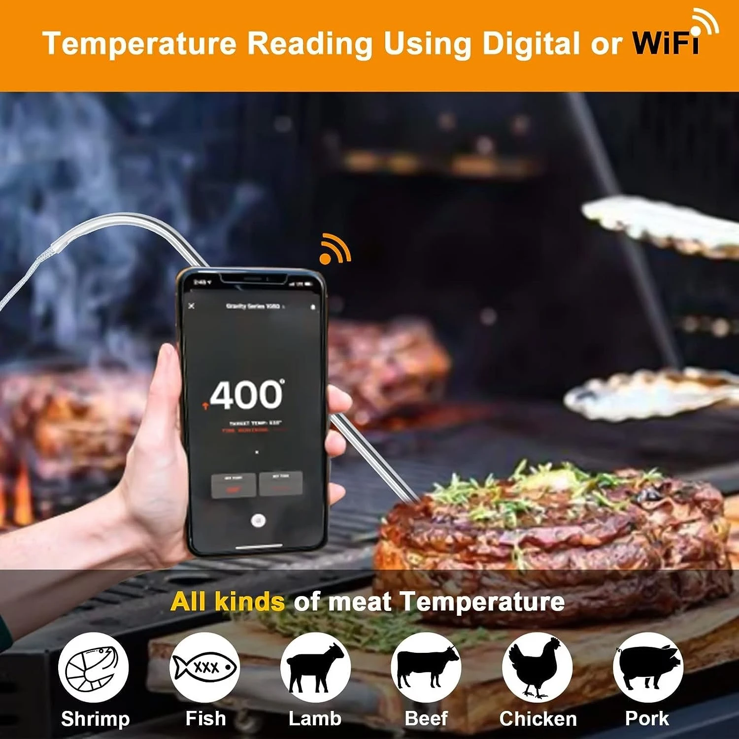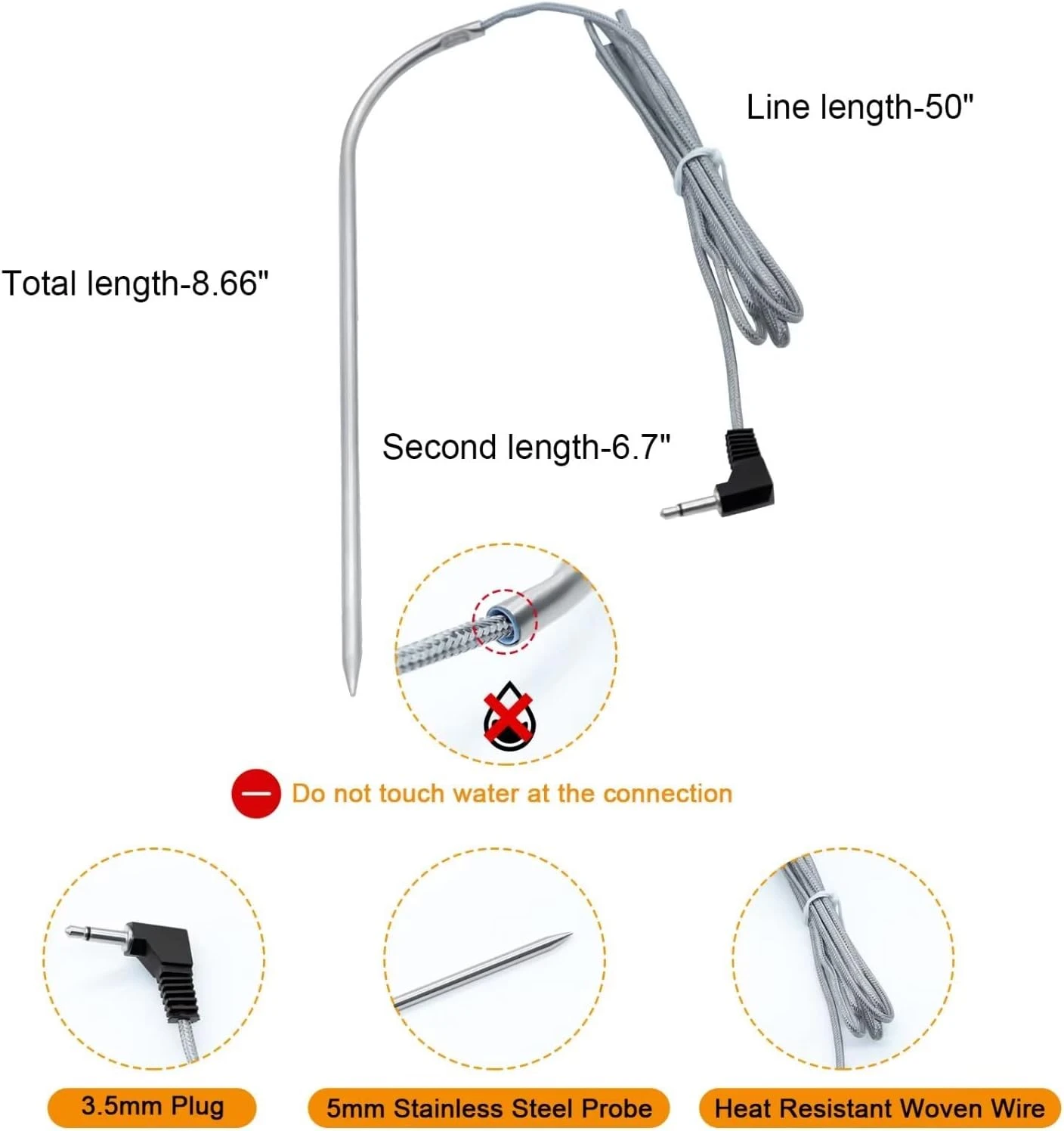 - 【EASY TO USE】: Plug and Play, grill temp probe for all meats. Stainless steel and high temperature resistant materials is durable. the tip of the probe tube removable and easy clean up. Using precision high temperature thermistors to allow you easy to cook a variety of foods to their desired temperatures.