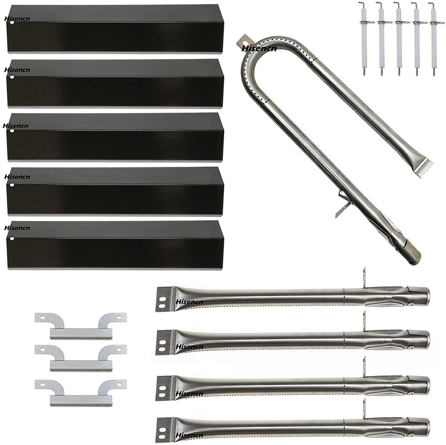 - Package: Includes 4 Stainless Steel carry-over tubes, 5 Stainless Steel burners and 5 Porcelain Steel Heat Plates, 1 sear burner