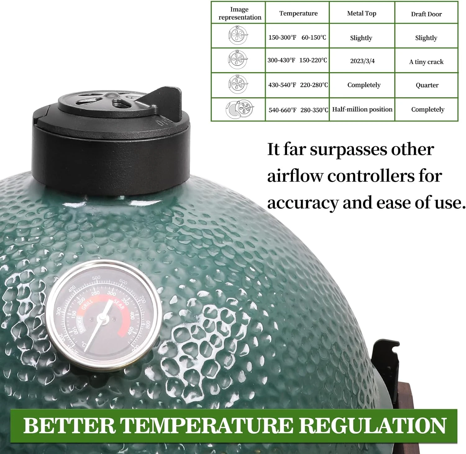 - 【Temperature Control】Accurately control airflow and heat,and achieve ideal temperature in a short period of time.The chimney cover with the windproof door at the bottom of the grill,you can more accurately control the airflow and calories.