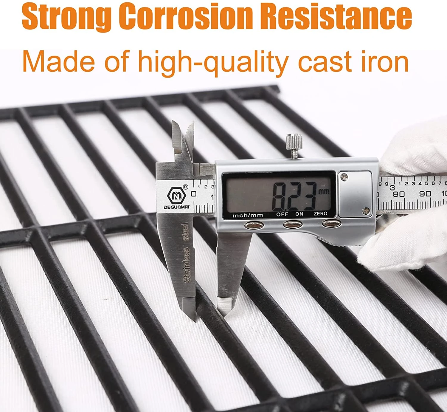- 【Decent Quality】Made of durable matte cast iron to ensure service life and rust resistance. Cast iron grill grates not only heat evenly and retain heat superbly, but also deliver professional searing, able to give prominent sear marks to meat or veggie. Unlike enamel ovens, which crumble and rust, they are more durable and easy to clean.