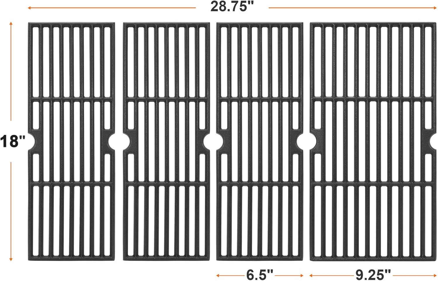 - Package: Set of 4 Grill Grates, includes 1 larger grate and 3 smaller grate. 18 1/8 x 9 1/4 x 1PC + 18 1/8 x 6 1/2 x 3PC