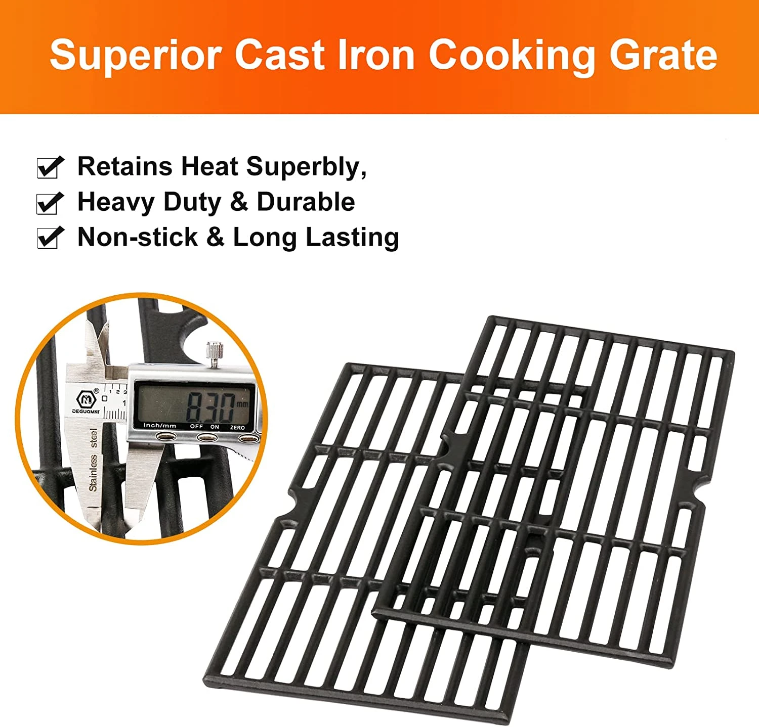- 【Package of Replacement Parts】 Packing including 2 pieces grill cooking grates. The packing are perfect to protect then from damage during the transportation.