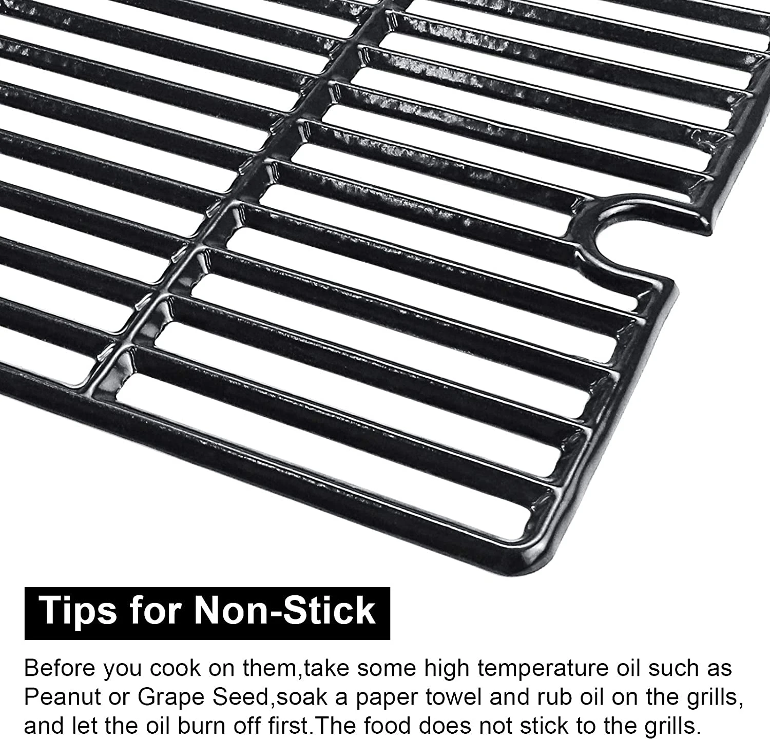 - Dimensions: 16 1/2″ x 10 9/10″ each cooking grate, 16 1/2″ X 21 8/10″ total 2 grates; 41.91cm x 27.69cm each cooking grate, 41.91cm X 55.37cm total 2 grates.