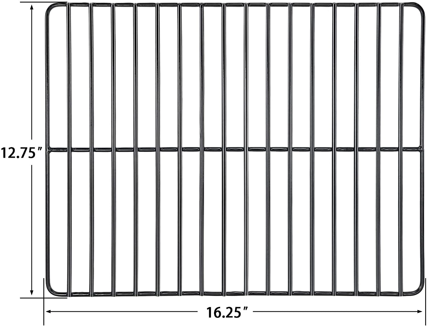- Dimensions: Length 16.25 inch, width 12.75 inch, 207 square inches for cooking grates; Length 41.27 cm, width 32.38 cm, 1335.48 square cm for cooking grates;