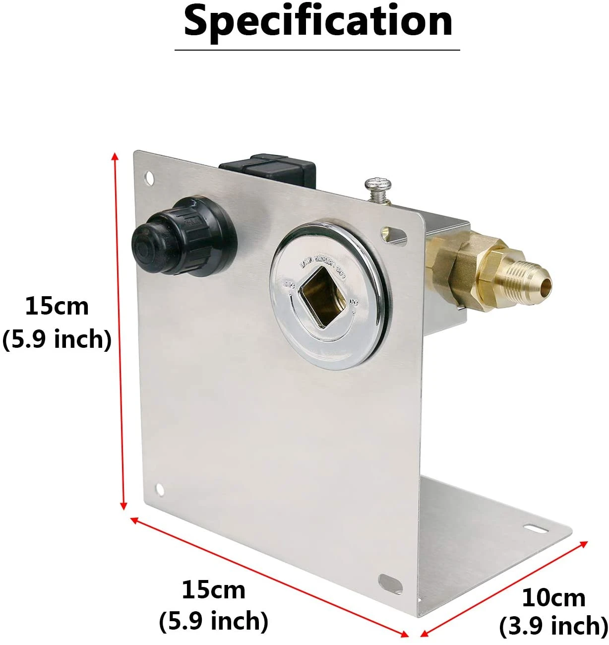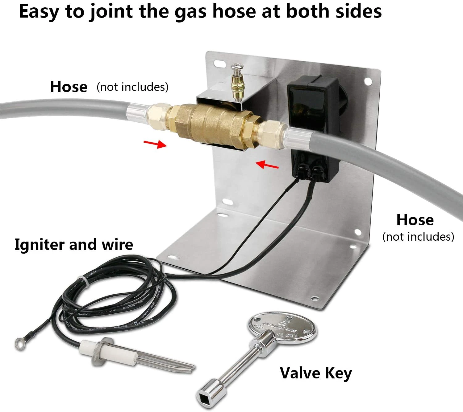 - Package: Kit contains Stainless Steel Mounting Plate, 1 x 1/2-Inch Straight Quarter-Turn Shut-Off Valve, 1 x 3-inch Key, 2 x 3/8 Male Flare x 1/2 NPT Fittings, 1 x Push Button Igniter, 1* Ground Wire, 1* Spark Ignitor wire.