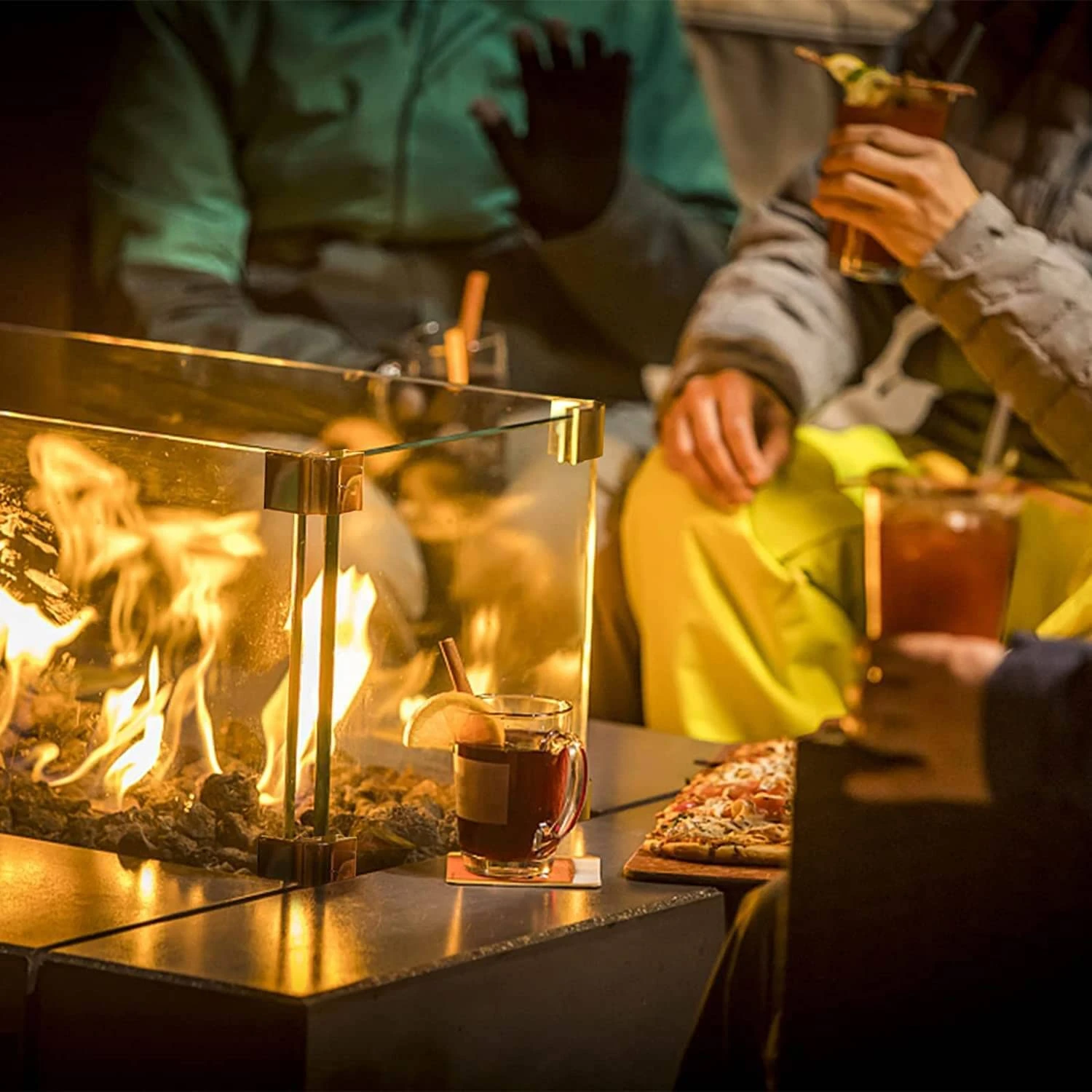 - 【Safety Design】: Fire table glass wind guard with [removable text tips stickers] and specially designed rounded corner brackets, glass panel edges are smoothed to prevent accidental bumps or scratches, and flames are enclosed to protect pets and children in the home.