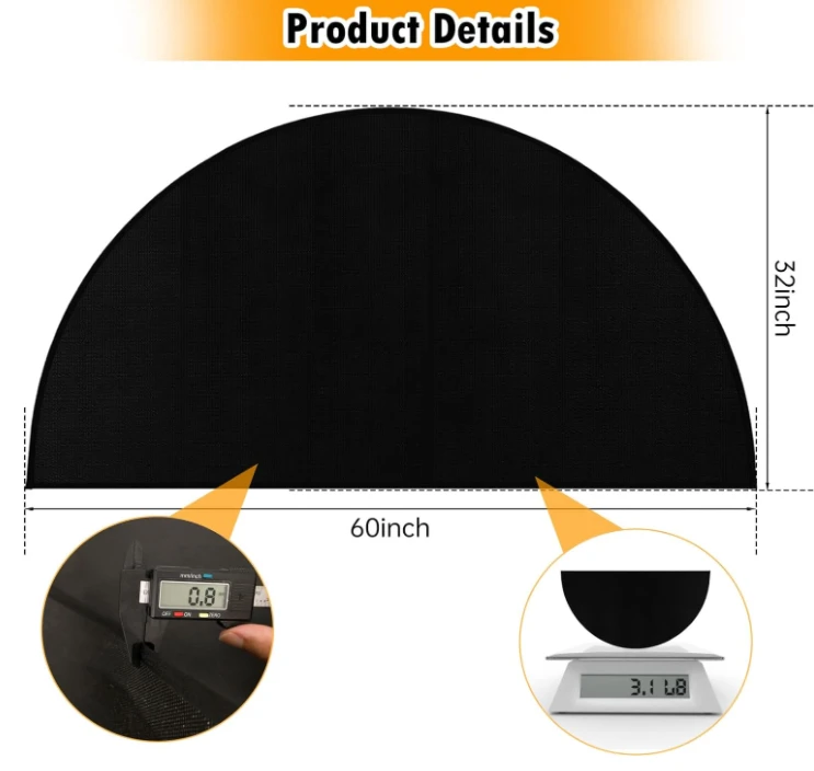 - Premium Material – This style of half round fireproof fireplace mat is made of high-quality double-layer flame-resistant fiberglass material,feature silicone coating on both sides,which can allow withstand temperature up to 1832 °F.