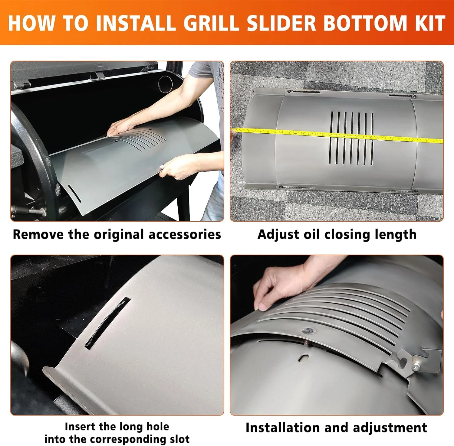 - ✅【Easy Installation】- (1) Remove original parts. (2) Adjust the oil collection plate length to fit your grill. (3) Insert a long hole into the matching slot. (4) Place the positioning post into an oval hole. (5) Insert groove at front of adjustment rod into flame adjustment plate, then reset buckle. Detailed instructions are included for effortless setup, even for first-time users.