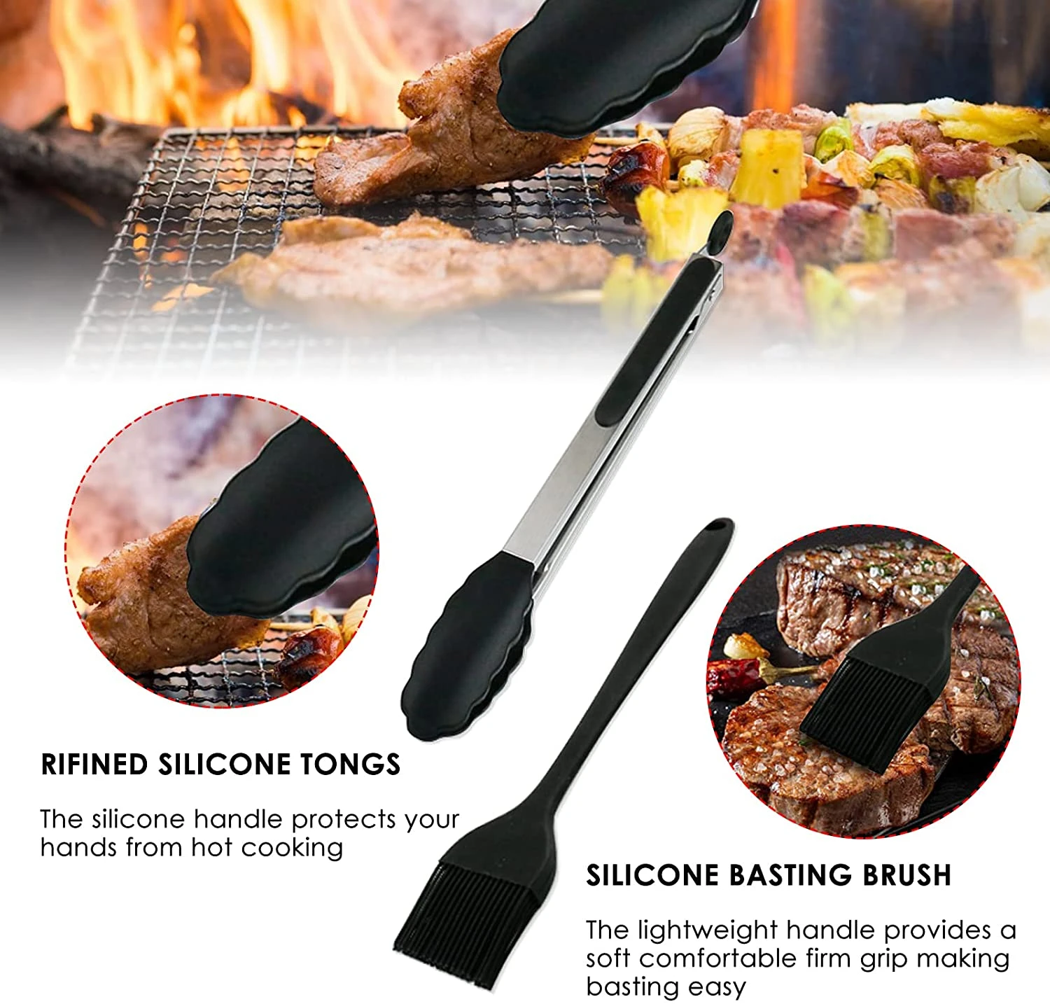 - 【PROFESSIONAL GRILL TOOLS SET】- The premium 11PCS griddle accessories kit has all the griddle tools you need for backyard griddle cooking, including 1 x 12” Cheese Melting Dome, 2 griddle spatulas, burger spatula, scraper, grill tongs, basting brushes, 2 egg rings, 2 bottles. Features all of the grilling accessories you need to cookout like a chef