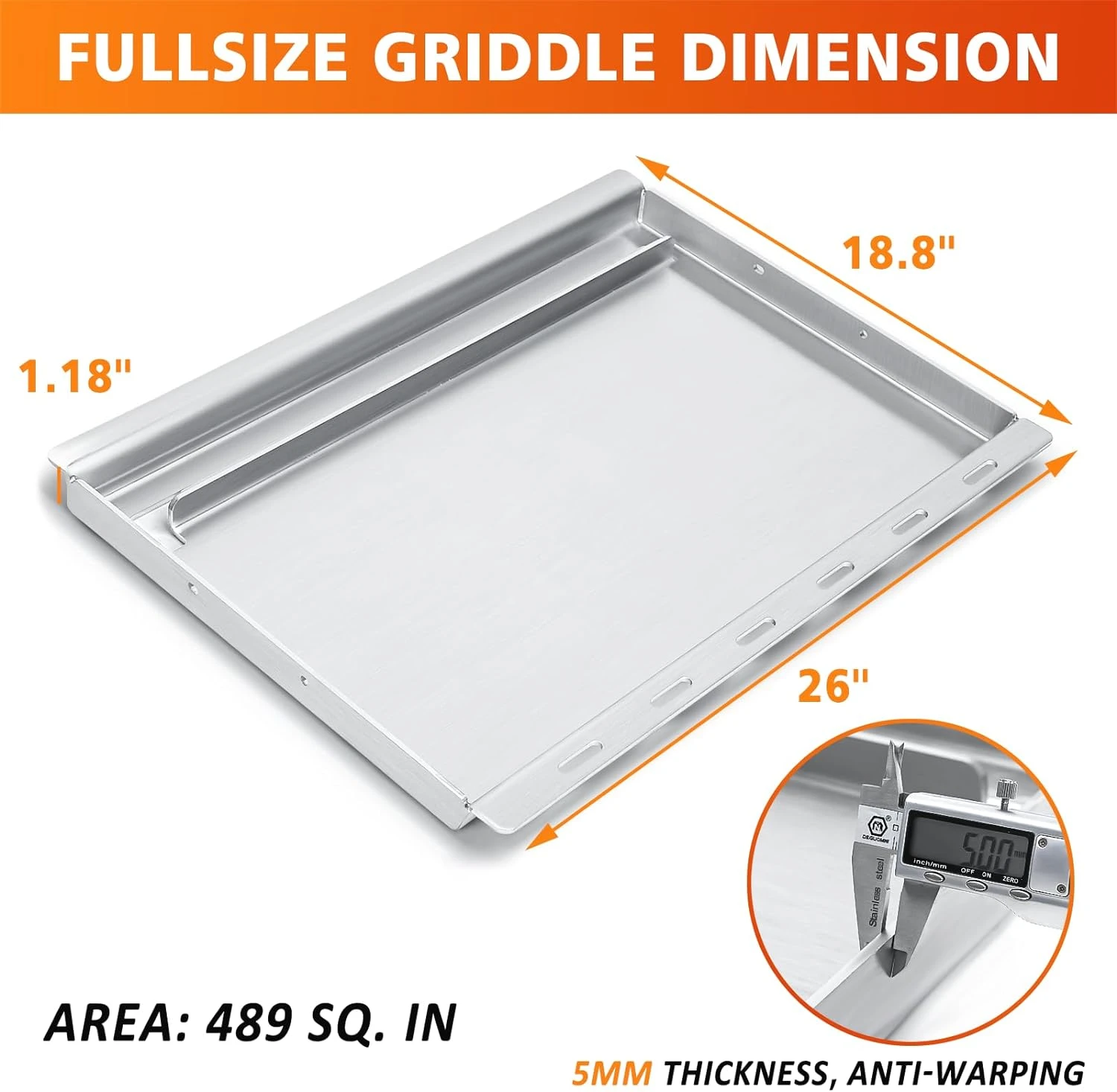 - DIMENSIONS: 26″ x 18.8″ x 1.18″. Materials: Made of durable stainless steel, corrosion resistance, 5mm thickness resists warping, replace for weber 6789. Please confirm your model number and size before placing an order