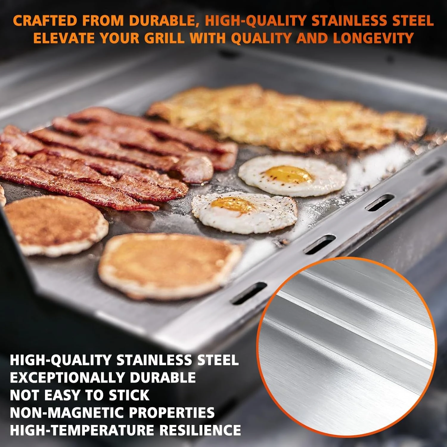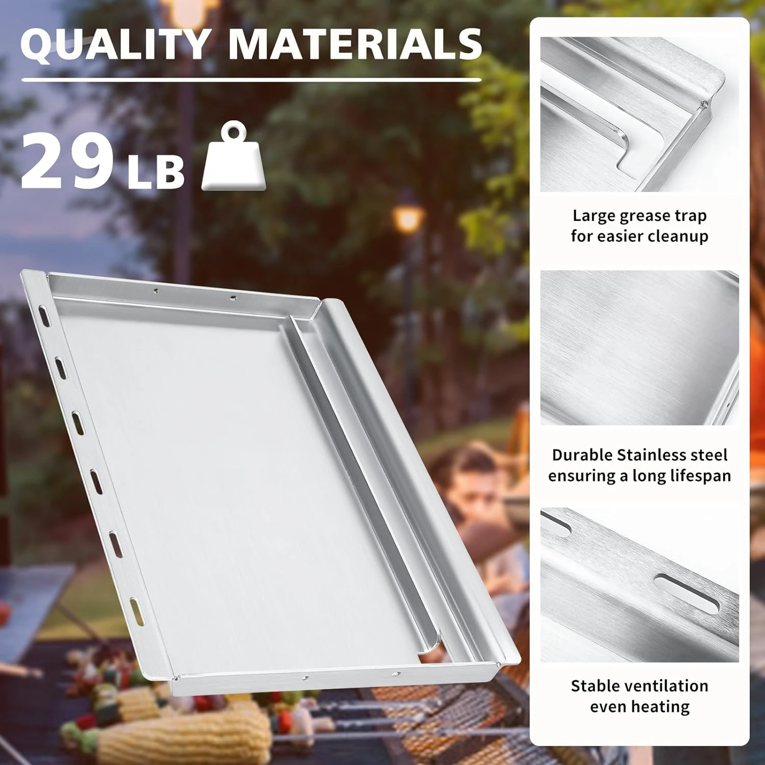 - HEAT ENENLY: Made of durable stainless steel to ensure long-lasting use. Large cooking area for rich food preparation, corrosion resistant, and easy to clean. It is perfect for the Weber Genesis series, just easily remove the grill grates, and you can get a perfect griddle grill, with the very perfect design to bring you a new grill experience!
