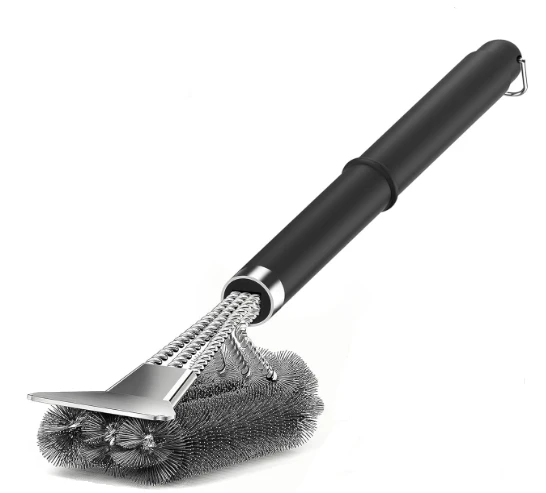 - Extra Strong Ergonomic Handle – Still believe that as long as the bristles are stiff enough, the grill cleaning brush can live up to the name – a good barbecue brush? Of course not! A soft and durable handle with a stainless steel ring for hanging can make the clean work easier. No possibility such as the handle breaking up or snapped. You can succeed in using this BBQ cleaner for a very long time!