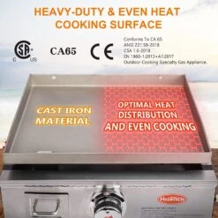 - 【Material】- Heavy duty cast iron. Built for durability and years of regular use. 【Dimension】- 13″ × 12.4″ × 1.18″. 【Cooking Area】- 142 Square inch. 【Package】- 1x Griddle/ Grill pan