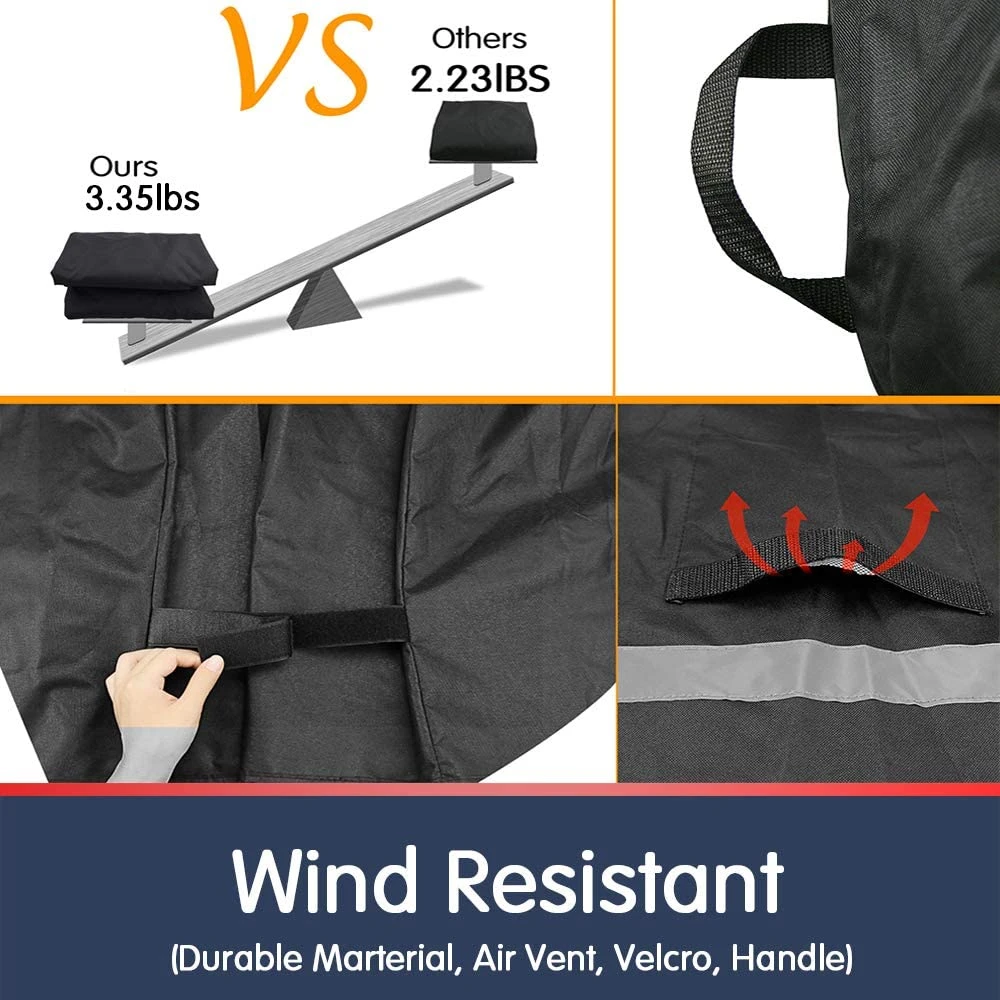 - 【Wind Resistant and Moistureproof】- Air vent will prevent moisture and condensation from building up, which can lead to rust. Also speed up the heat dissipation and let the grill to cool down faster. The air circulation can also prevent your cover from blowing away by high winds. Velcro straps is convenient heavy duty fastening straps keep cover securely fastened and prevent cover from slipping or blowing off