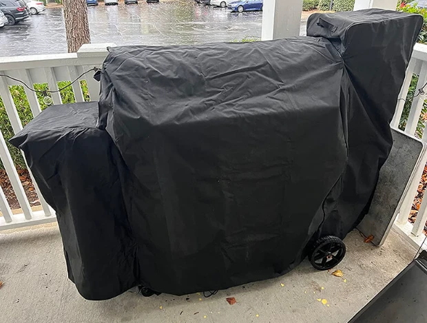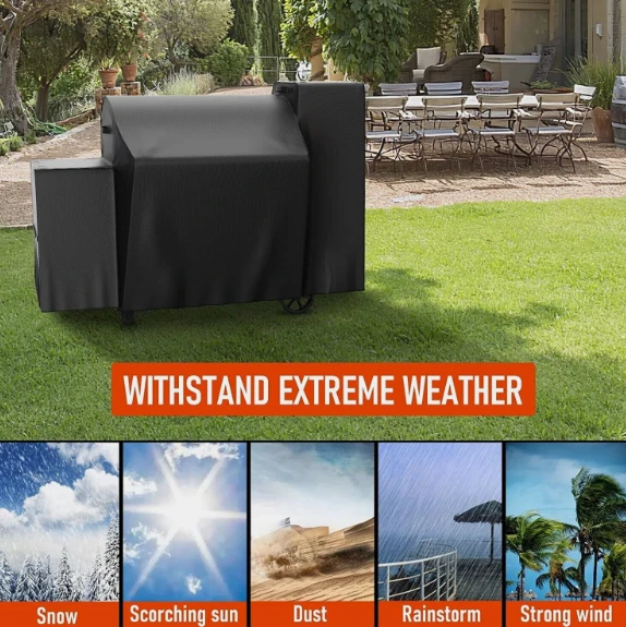 - 【600D Heavy Duty】- The grill cover uses 600D special polyester fabric, which can effectively resist accidental scratches, vinyl coating gives the cover fade resistance, The cover is manufactured with three durable layers paired with a thick stitching design to prevent tearing.