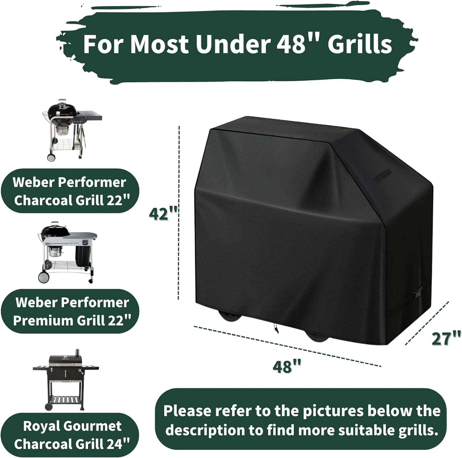 - 【Fits Various Grills】48″ L x 27″ W x 42″ H BBQ cover is for most charcoal grills under 48-inch.