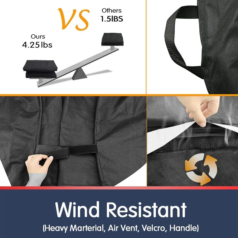 - 【Wind Resistant and Moistureproof】- Air vent will prevent moisture and condensation from building up, which can lead to rust. Also speed up the heat dissipation and let the grill to cool down faster. The air circulation can also prevent your cover from blowing away by high winds. Velcro straps is convenient heavy duty fastening straps keep cover securely fastened and prevent cover from slipping or blowing off