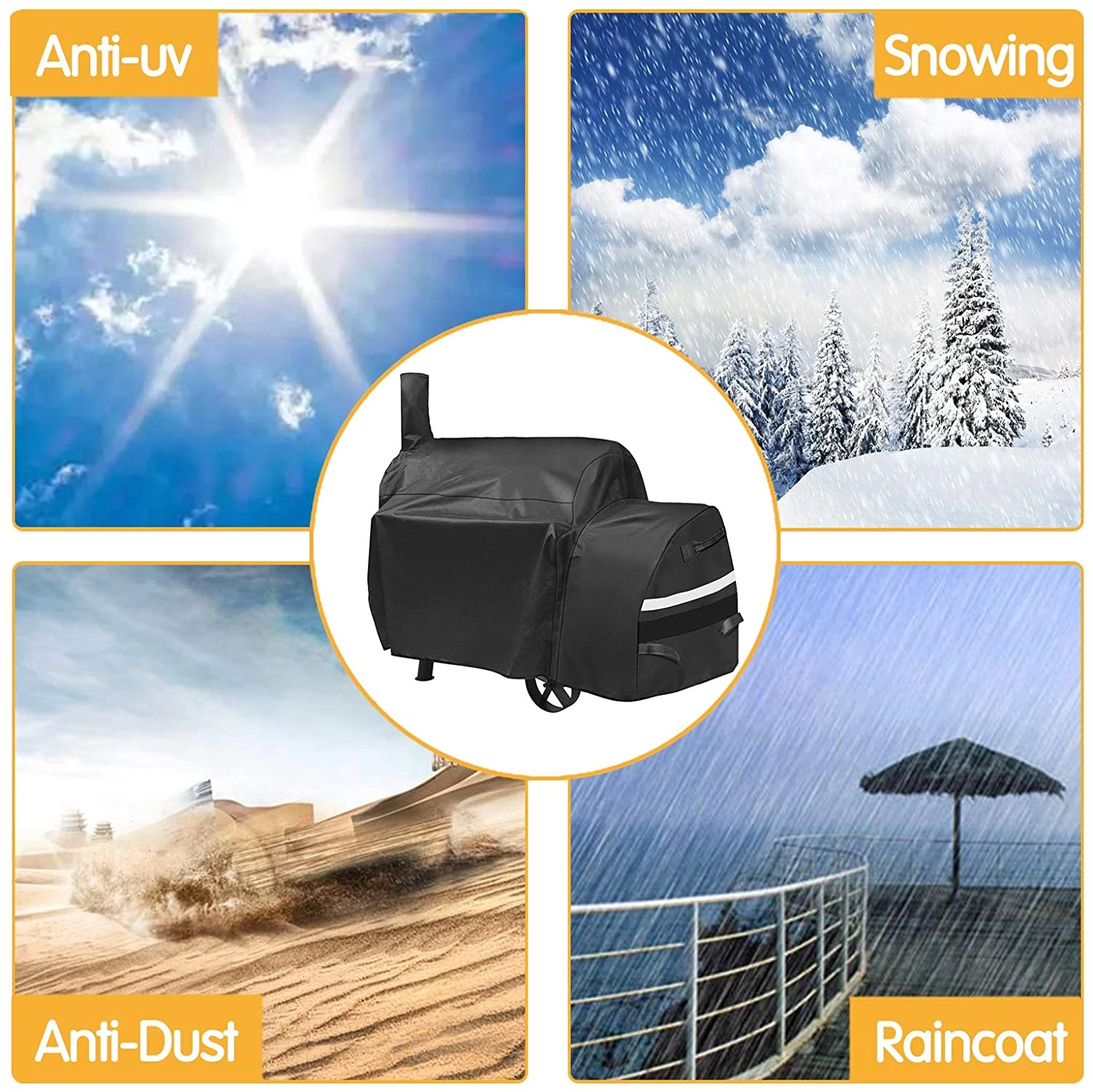 - Dimensions: Measures 59″ width by 37.5″ depth and 33.5″ height accommodates 14.5”H smoke stack. Be sure to measure your smoker first to determine the proper cover
