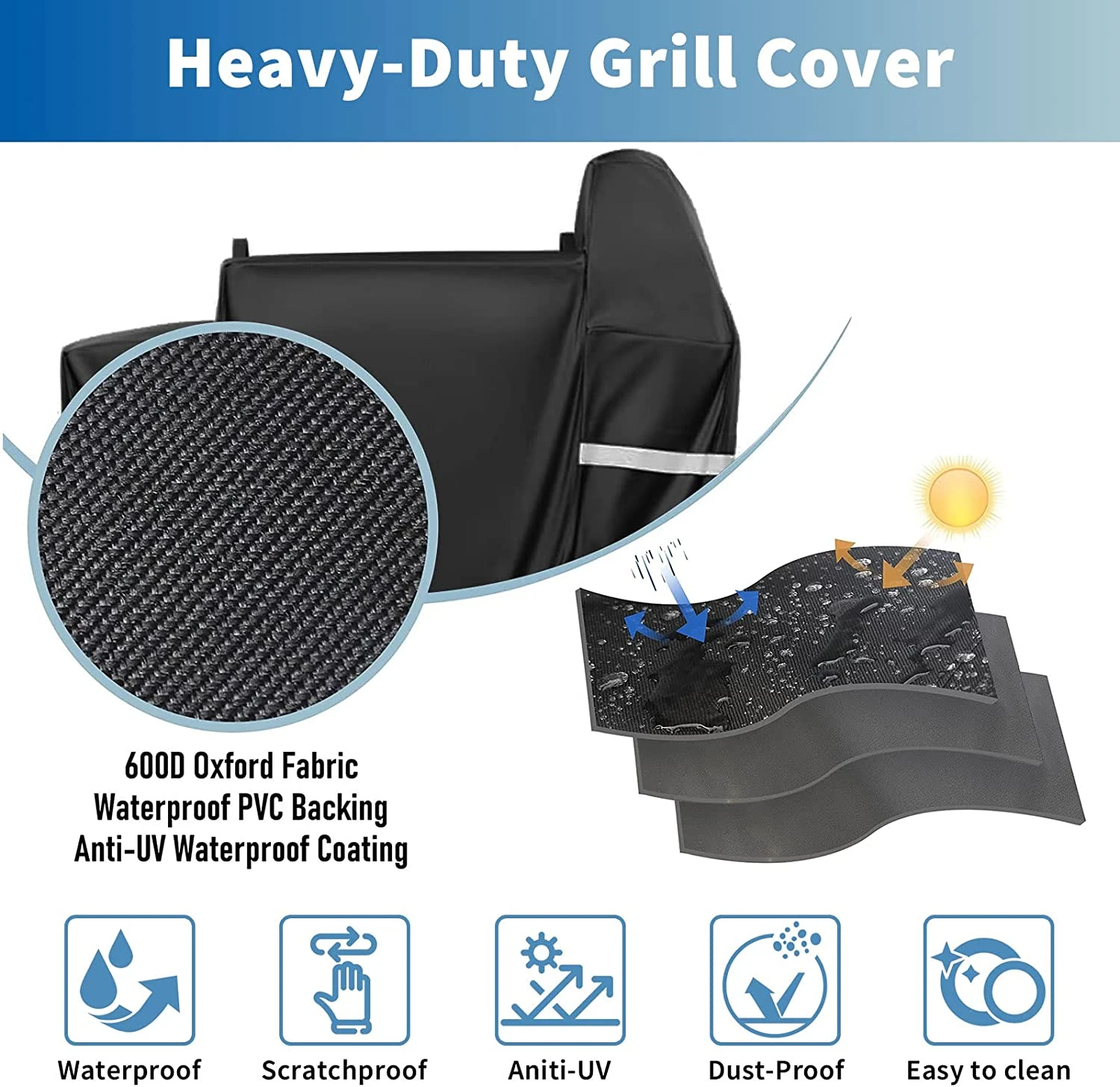 - 【TIPS】We recommend monthly cleaning for your grill cover. Keeping it in a well-ventilated, non humid area. Before you placing the grill cover on the grill, please allow the grill to cool and clean