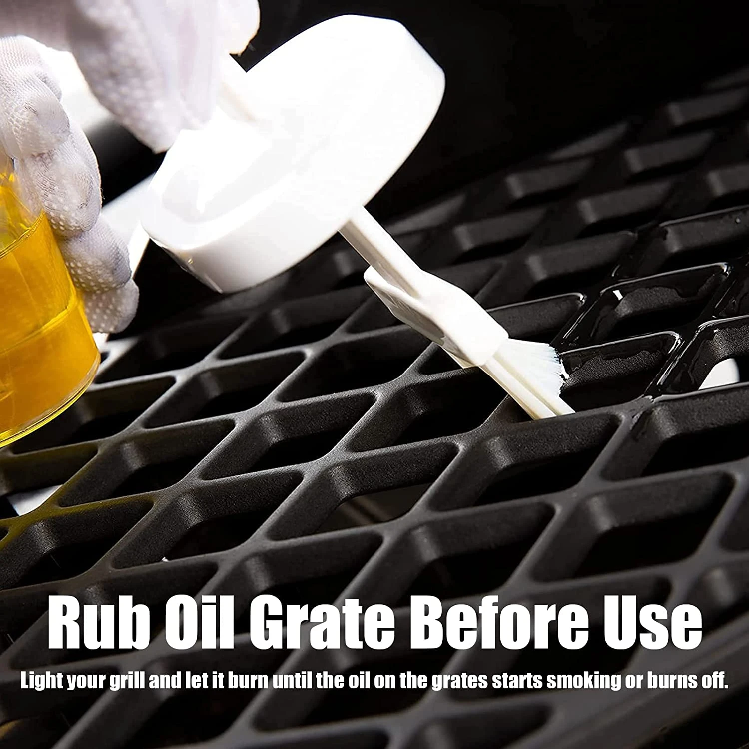 - 【Rub Oil Grate Before Use】Light your grill and let it burn until the oil on the grates starts smoking or burns off.