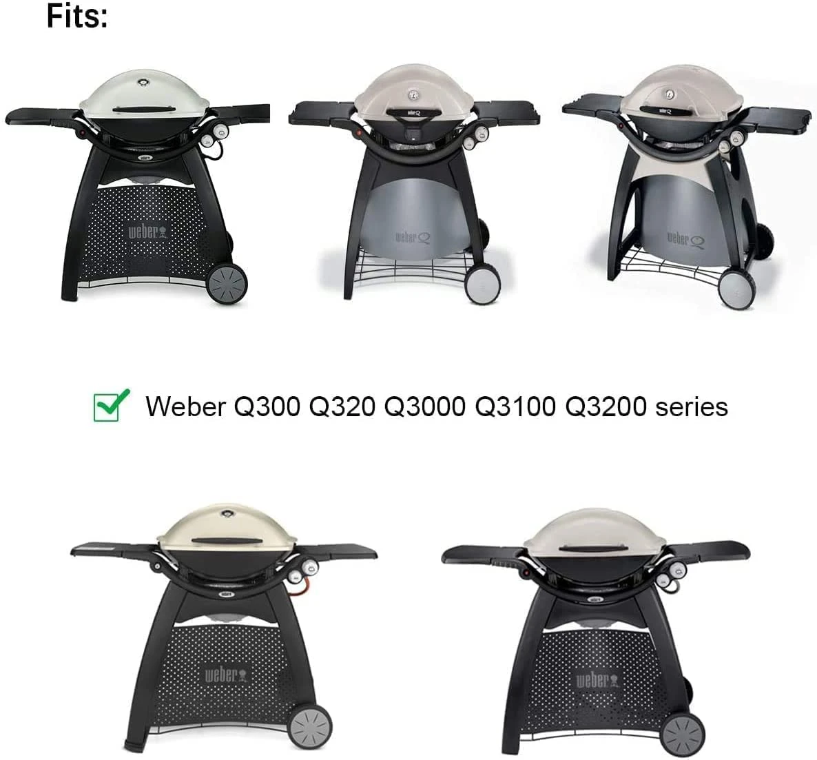 - Fits Weber Q300, Q320, Q3000, Q3100, Q3200 Series Gas Grills. Fits Weber Models: 586002, 57060001, 404341, 56060124, 56067224.