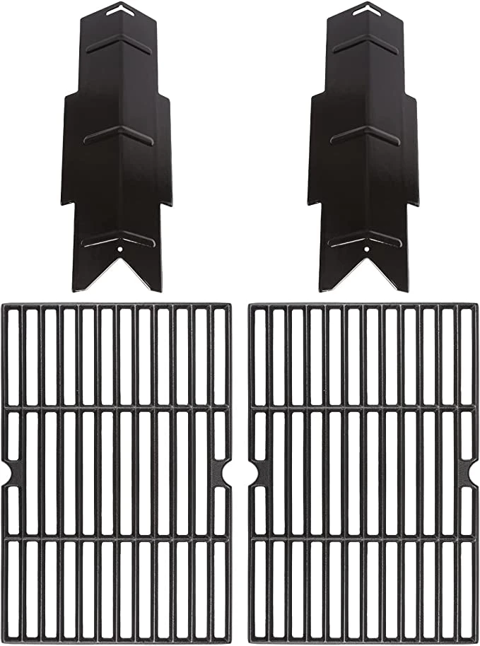 - 【Package of Replacement Parts】Repair Kit contains 2 packs of porcelain steel heat plates and 2 packs of cast Iron cooking grates. Thicker and heavier than others. The packing are perfect to protect them from damage during transportation.