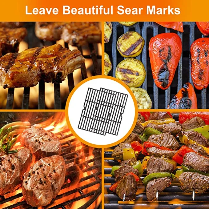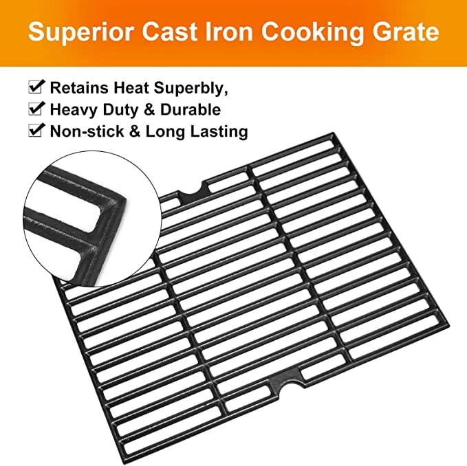 - 【Premium Quality】 Cooking grates are made of heavy cast iron to ensure long-lasting use, better bearing capacity and easy to clean; Flavorizer bars made of porcelain steel, strong corrosion resistance, and heat resistance. They all hamless and be safely used.