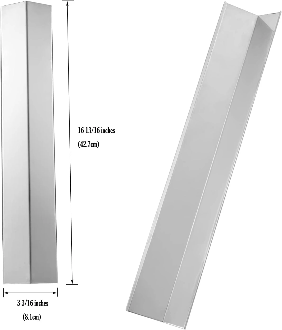 - Heat Shield Dimensions: 16 13/16″ long x 3 3/16″ wide; Burner Tube Dimensions: 17 1/2” long, 1” diameter; Crossover Tube Dimensions: Adjust from 4″ to 7.5″ long.