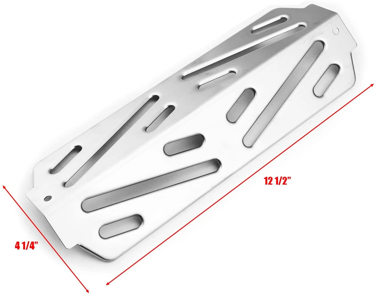 - DIMENSIONS: 12 1/2”x 4 1/4” / 12.5 x 4.25 Inch ; PACKAGE: 4-Pack grill heat deflector; MATERIAL: Solid 17 GA stainless steel